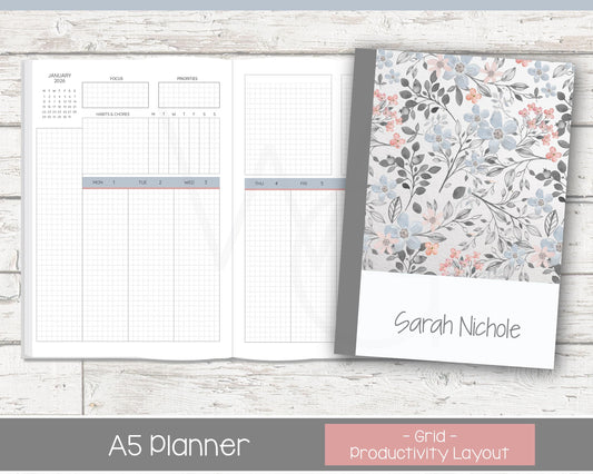 Weekly Personalized Planner | Productivity Weekly Planner | Grid Layout | Cottage Bloom