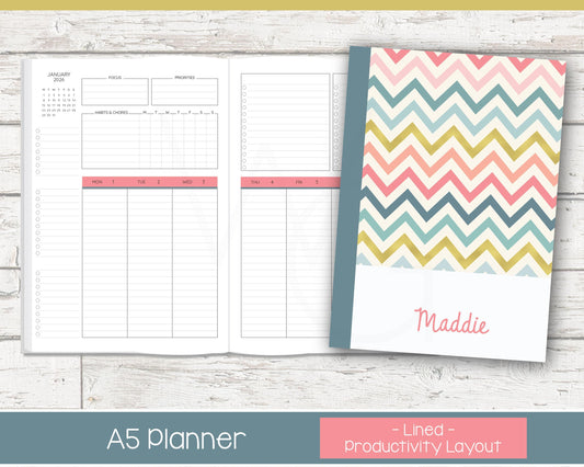 Weekly Personalized Planner | Productivity Weekly Planner | Lined Layout | Shabby Chevron