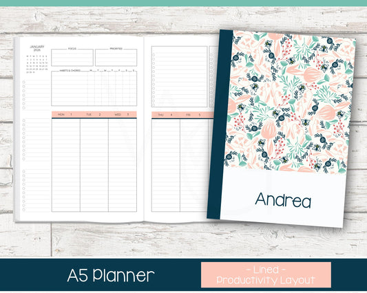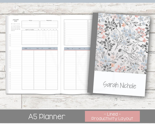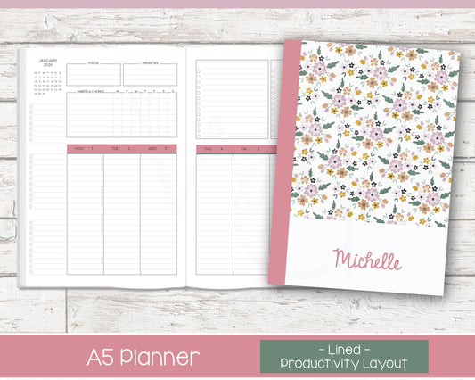 Weekly Personalized Planner | Productivity Weekly Planner | Lined Layout | Cottage Bloom