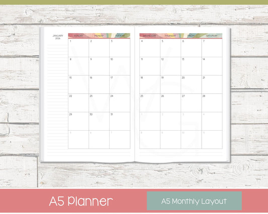Complete Productivity Planer | Month, Week, Day Planner | Lined Layout | Chevron Rainbow