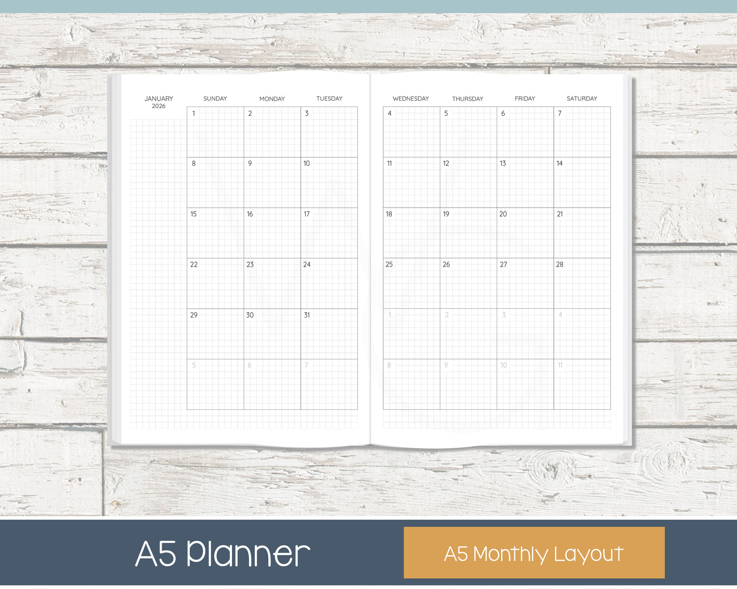 Grid planners use faint boxes or “graph paper” style squares across the page. The design offers more flexibility for drawing layouts, tracking habits, budgeting, or using stickers.