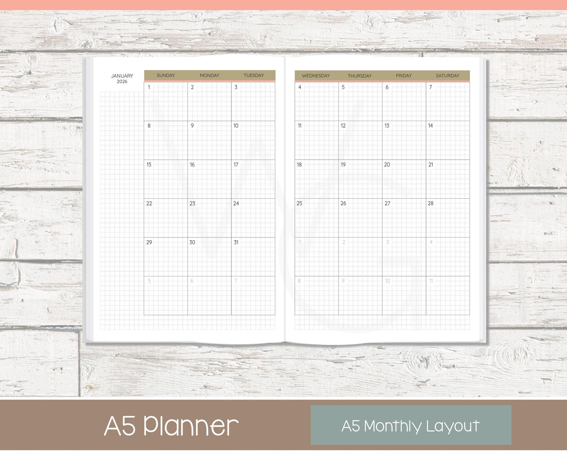 2026 A5 Grid Planner - Cottage Bloom- Personalized Cover with Coordinating pages