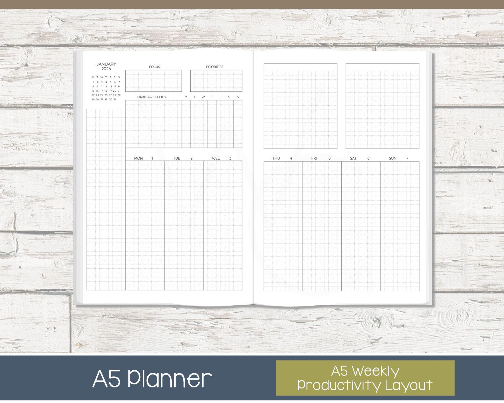 2026 A5 Grid Planner - Complete Vertical - Ready to Ship