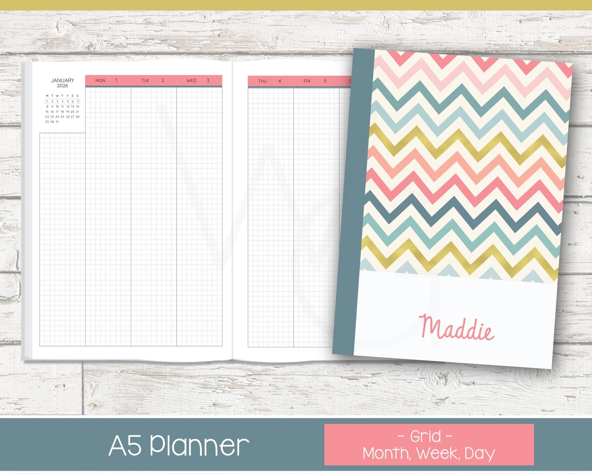 2026 A5 Grid Planner - Chevron Rainbow - Personalized Cover with Coordinating pages - Ready to ship in 7-12 business days