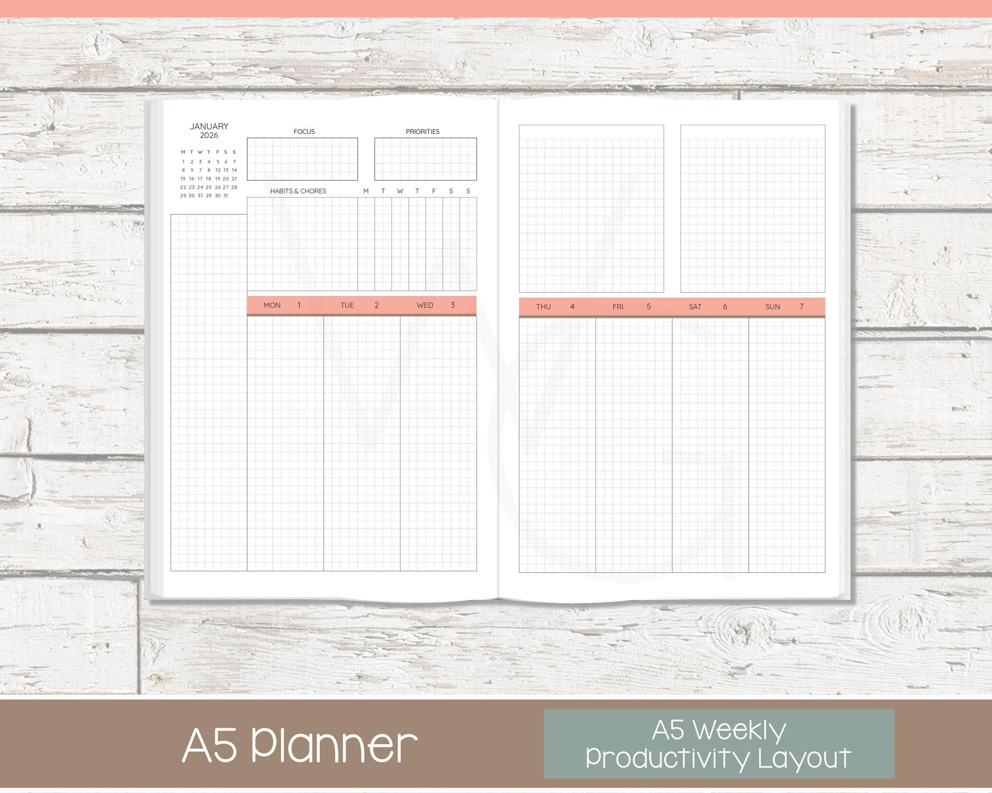 Weekly Personalized Planner | Productivity Weekly Planner | Grid Layout | Cottage Bloom