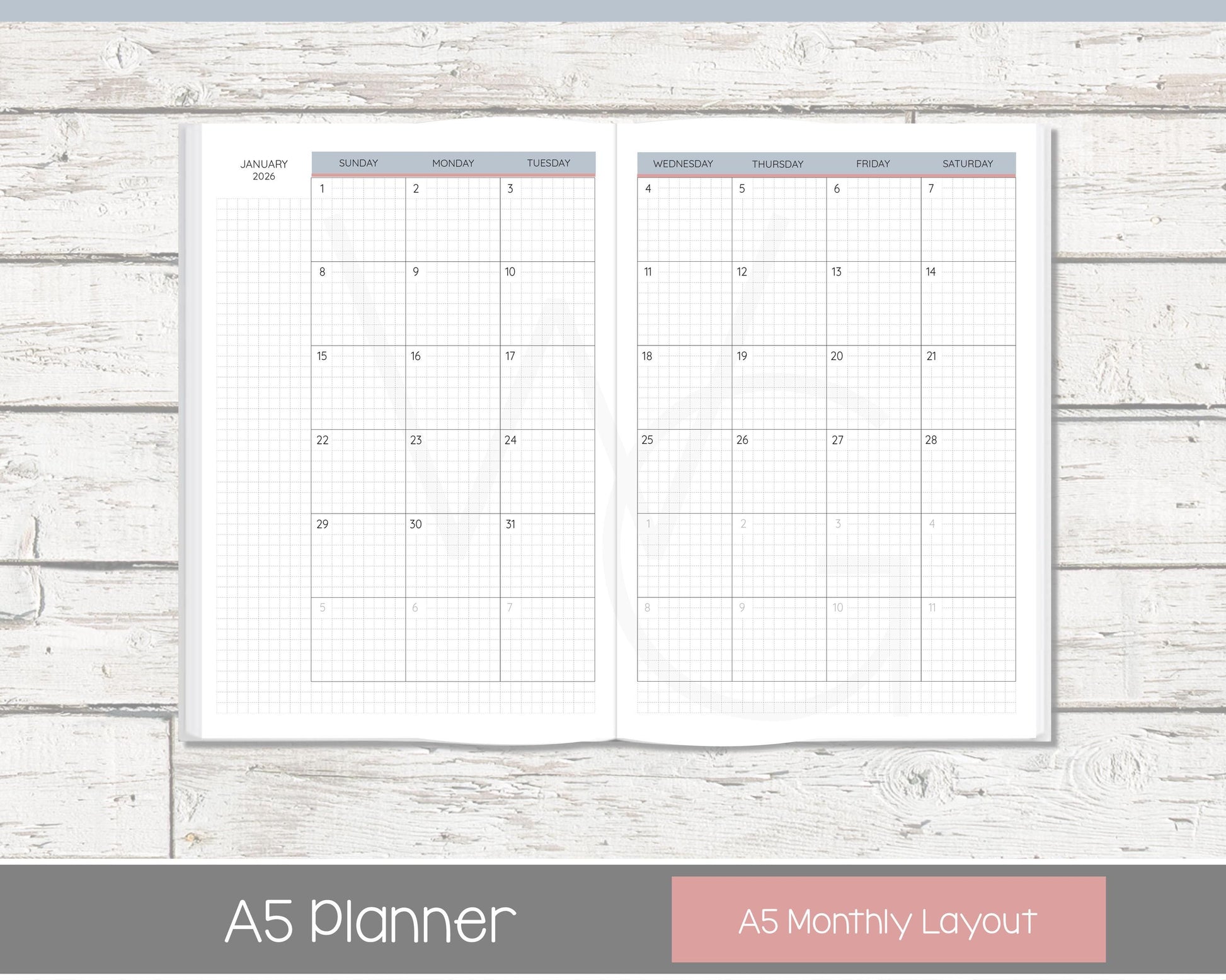 2026 A5 Grid Planner - Vintage Blues - Personalized Cover with Coordinating pages