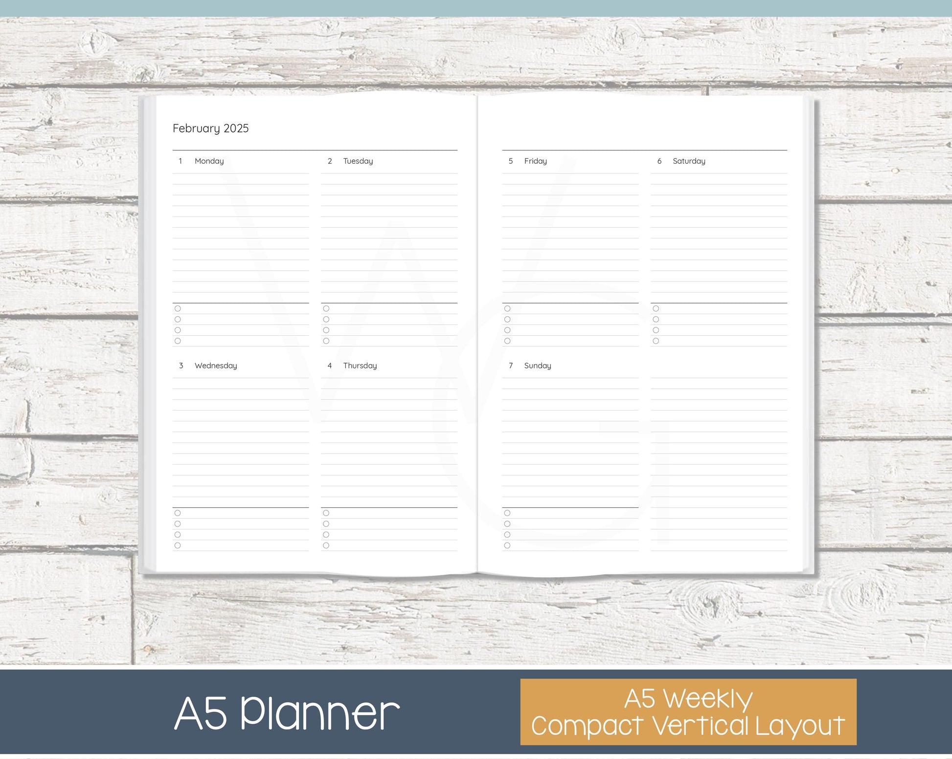 2026 A5 Lined Planner - Compact Vertical Weekly Planner - Ready to Ship