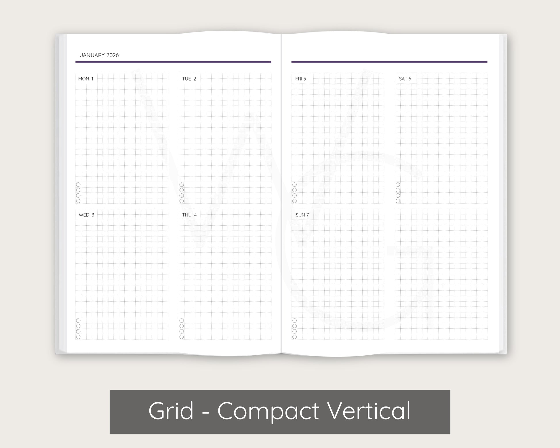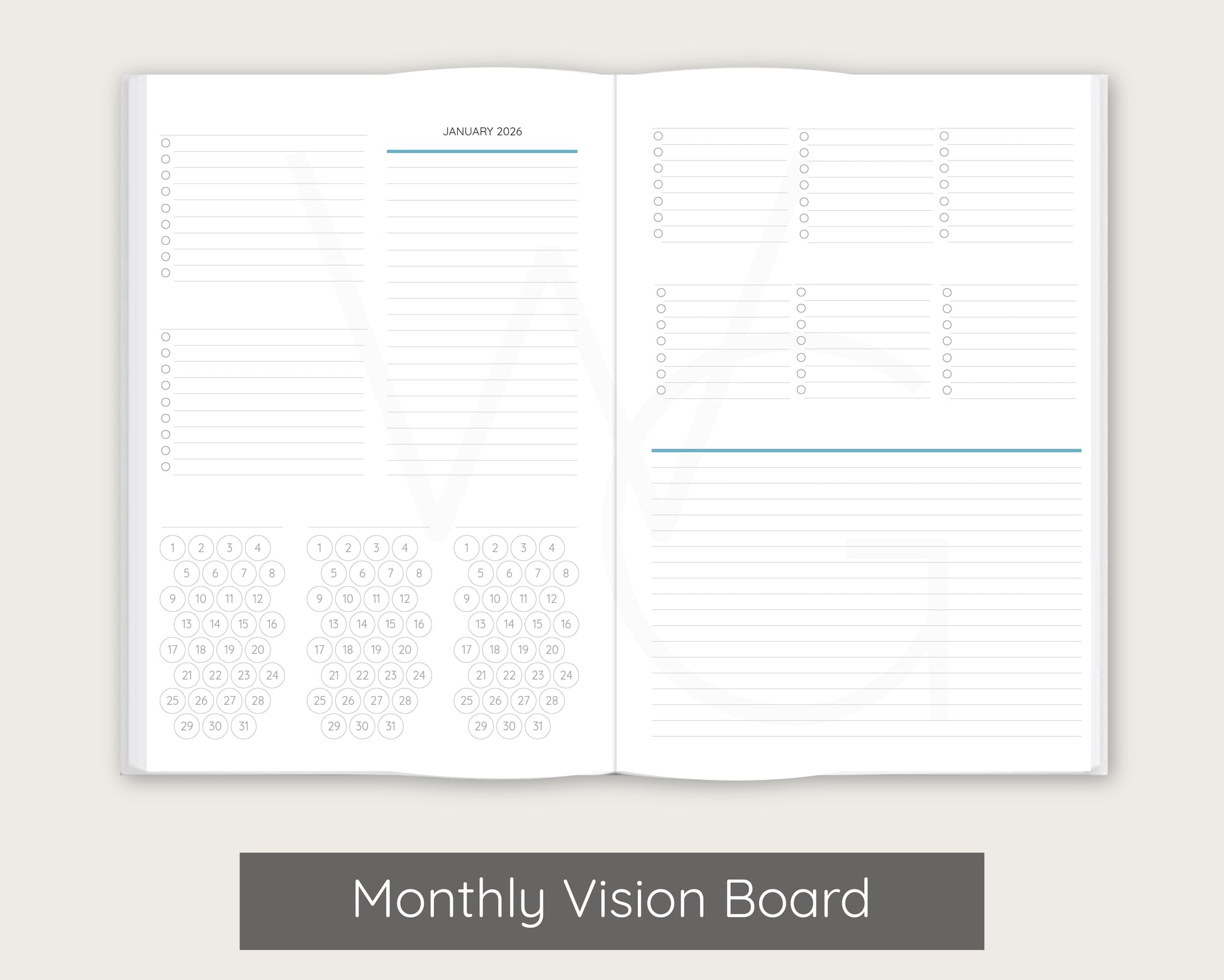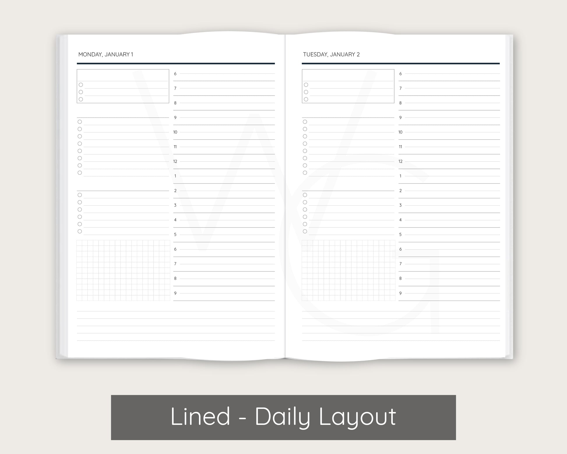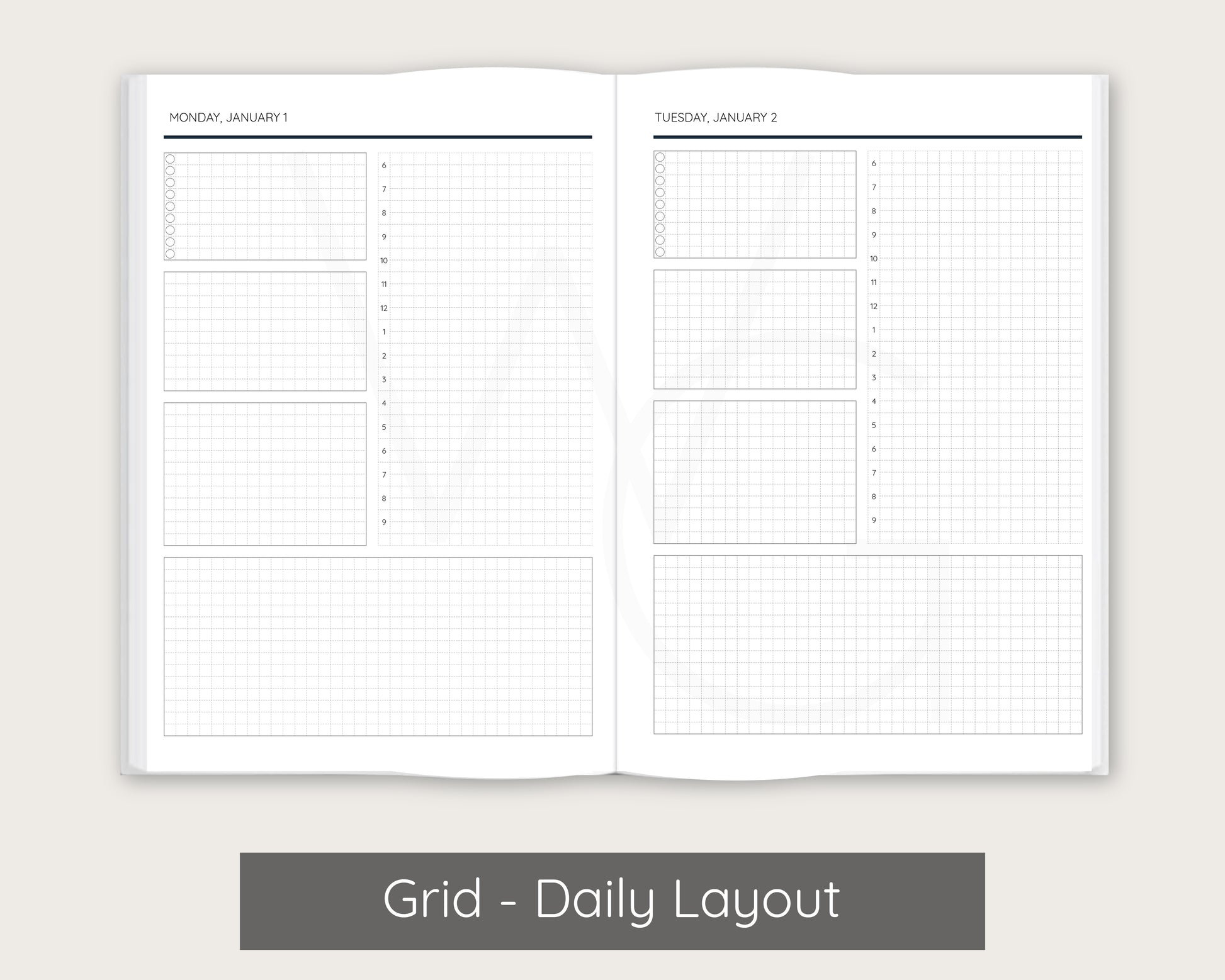 Planner setup is grouped by month. For example, a planner that begins in January will have January monthly layouts, January weekly layouts, January daily layouts followed by February's layouts.