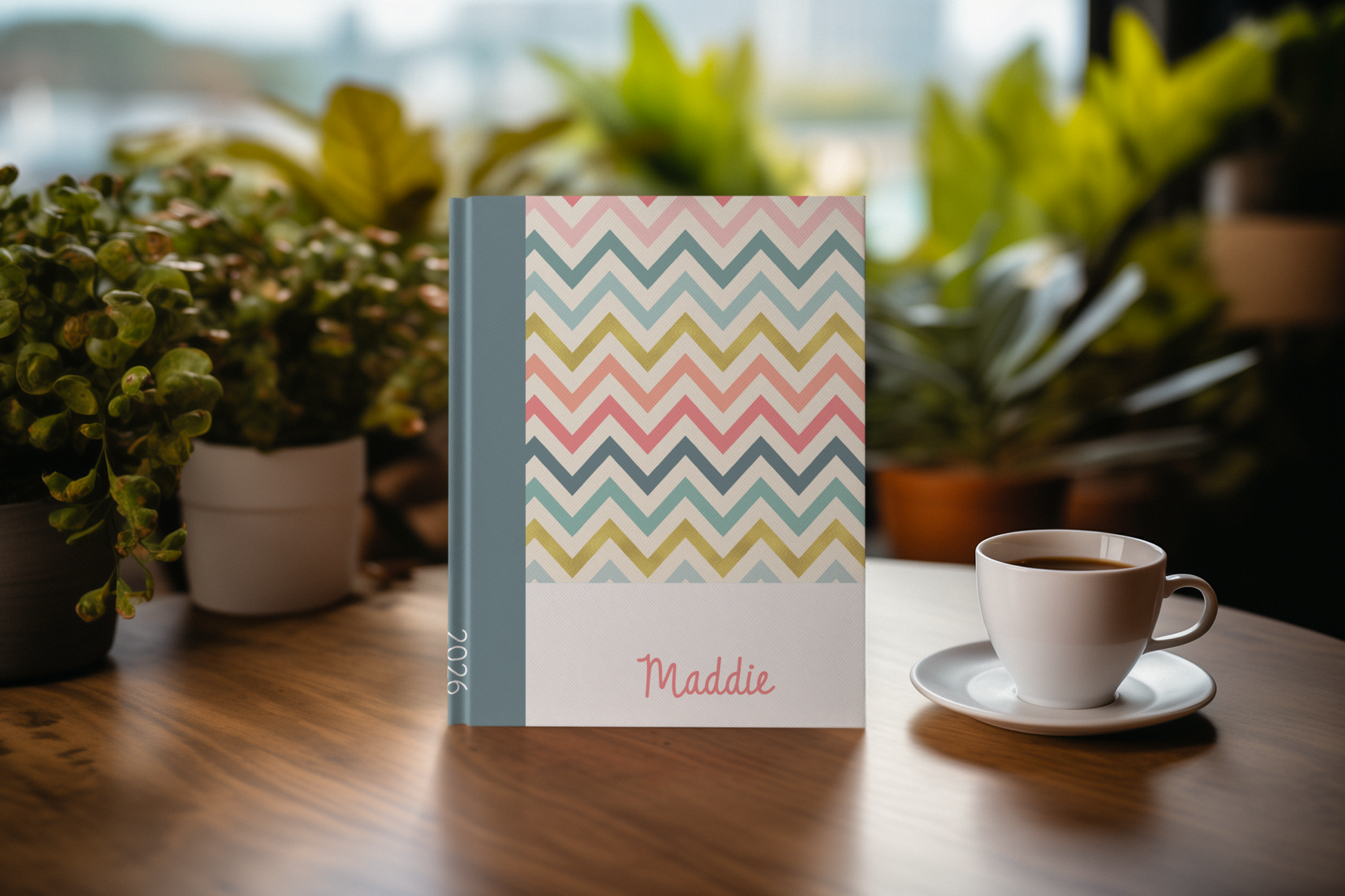 2026 A5 Lined Planner - Chevron Rainbow - Personalized Cover with Coordinating pages - Ready to ship in 7-12 business days