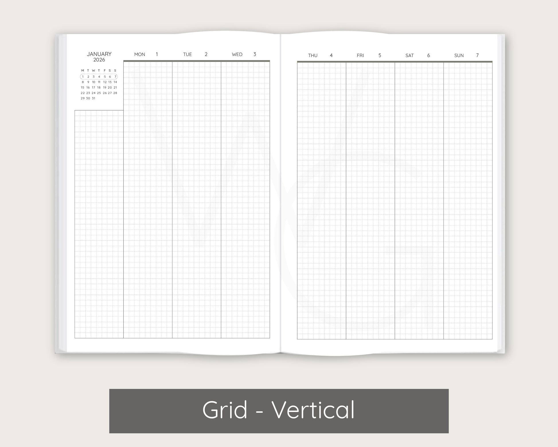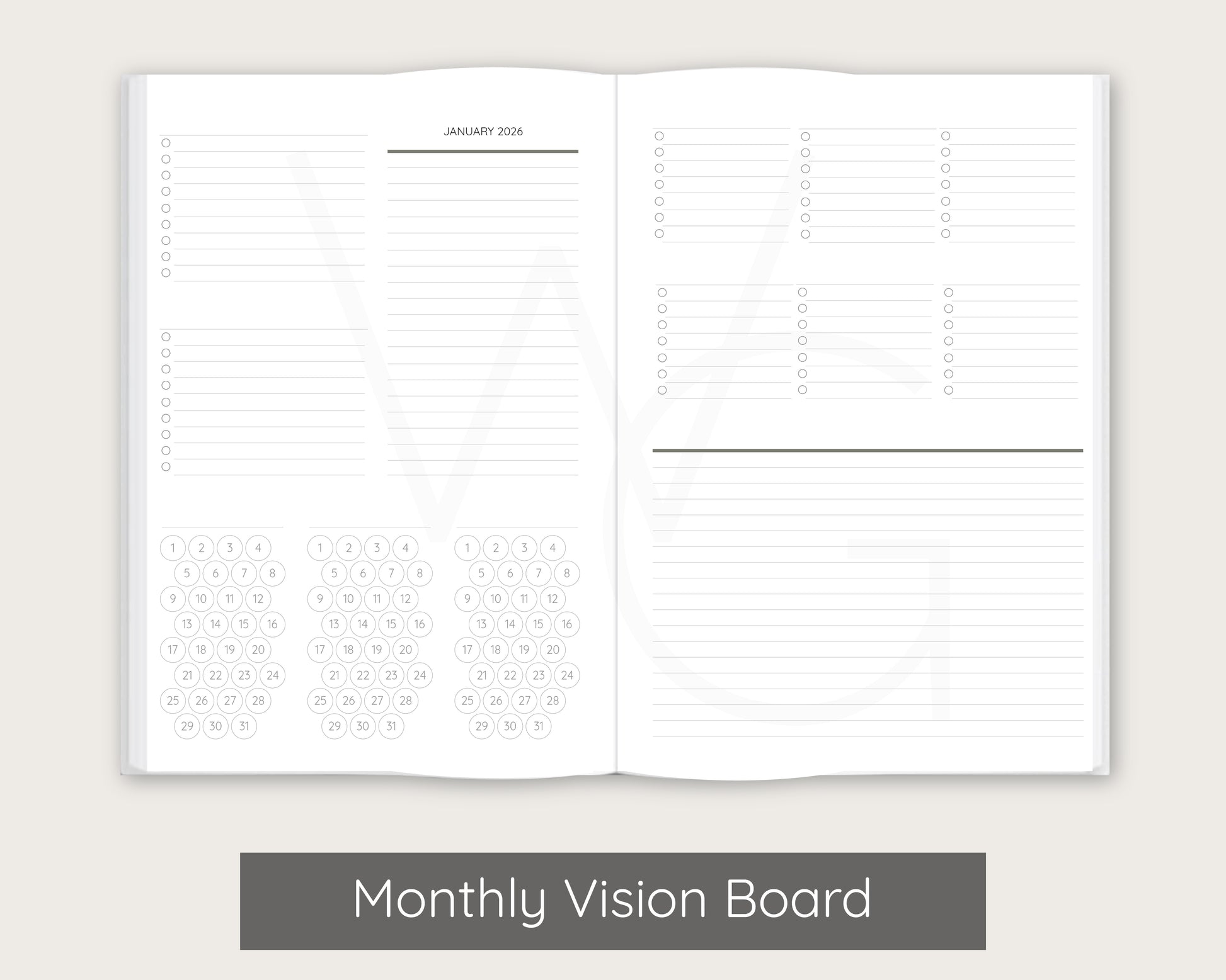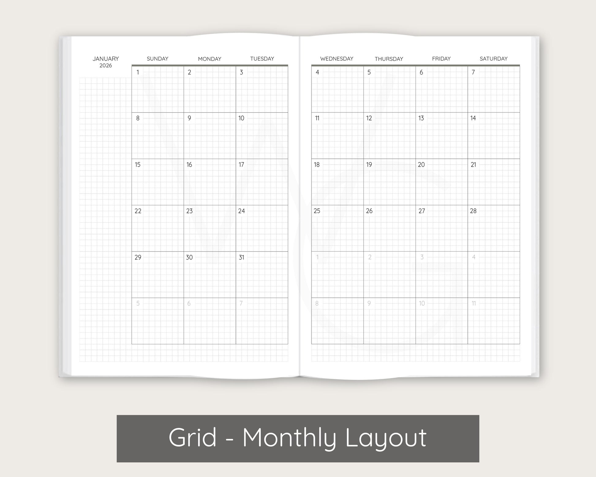 Planner setup is grouped by month. For example, a planner that begins in January will have January monthly layouts, January weekly layouts, January daily layouts followed by February's layouts.