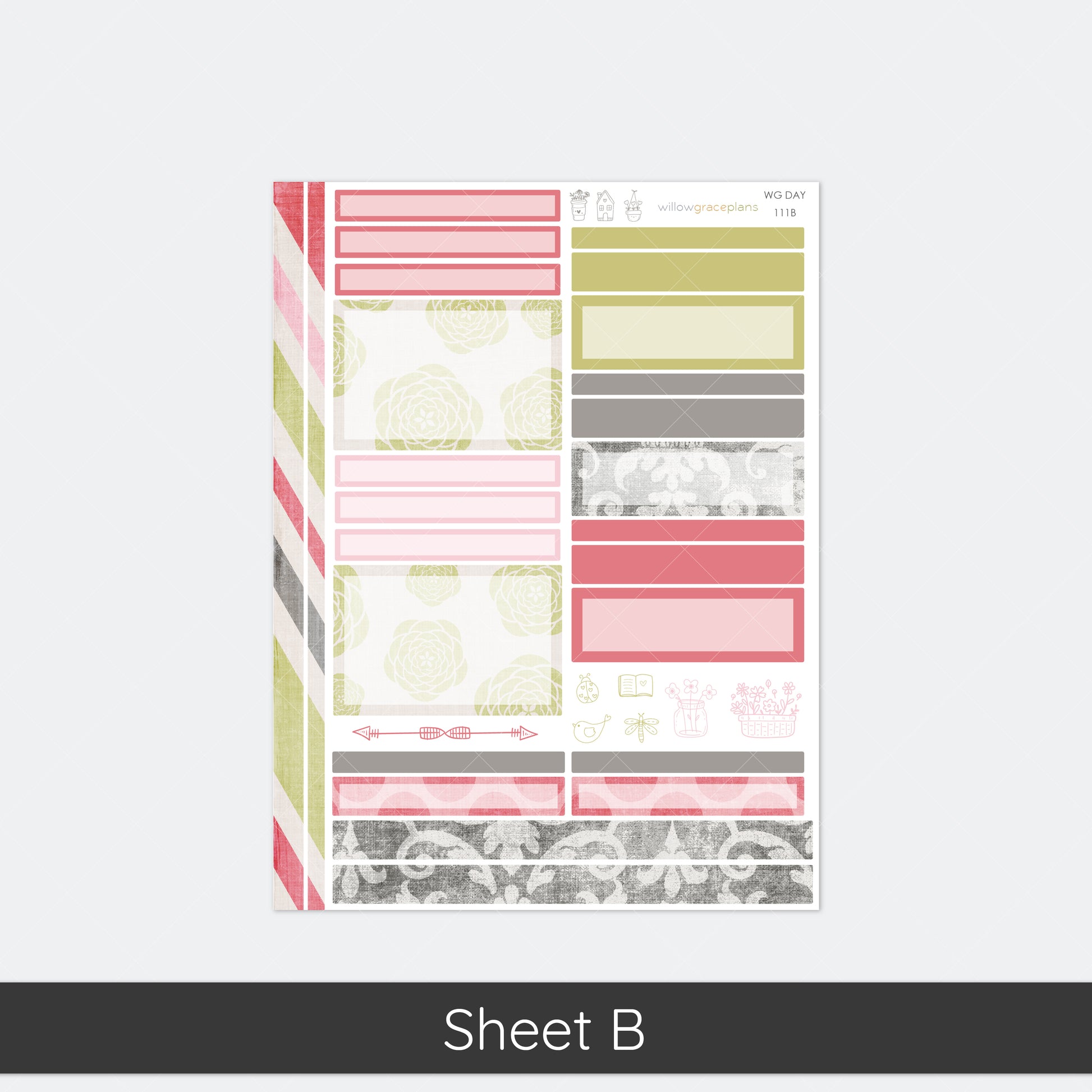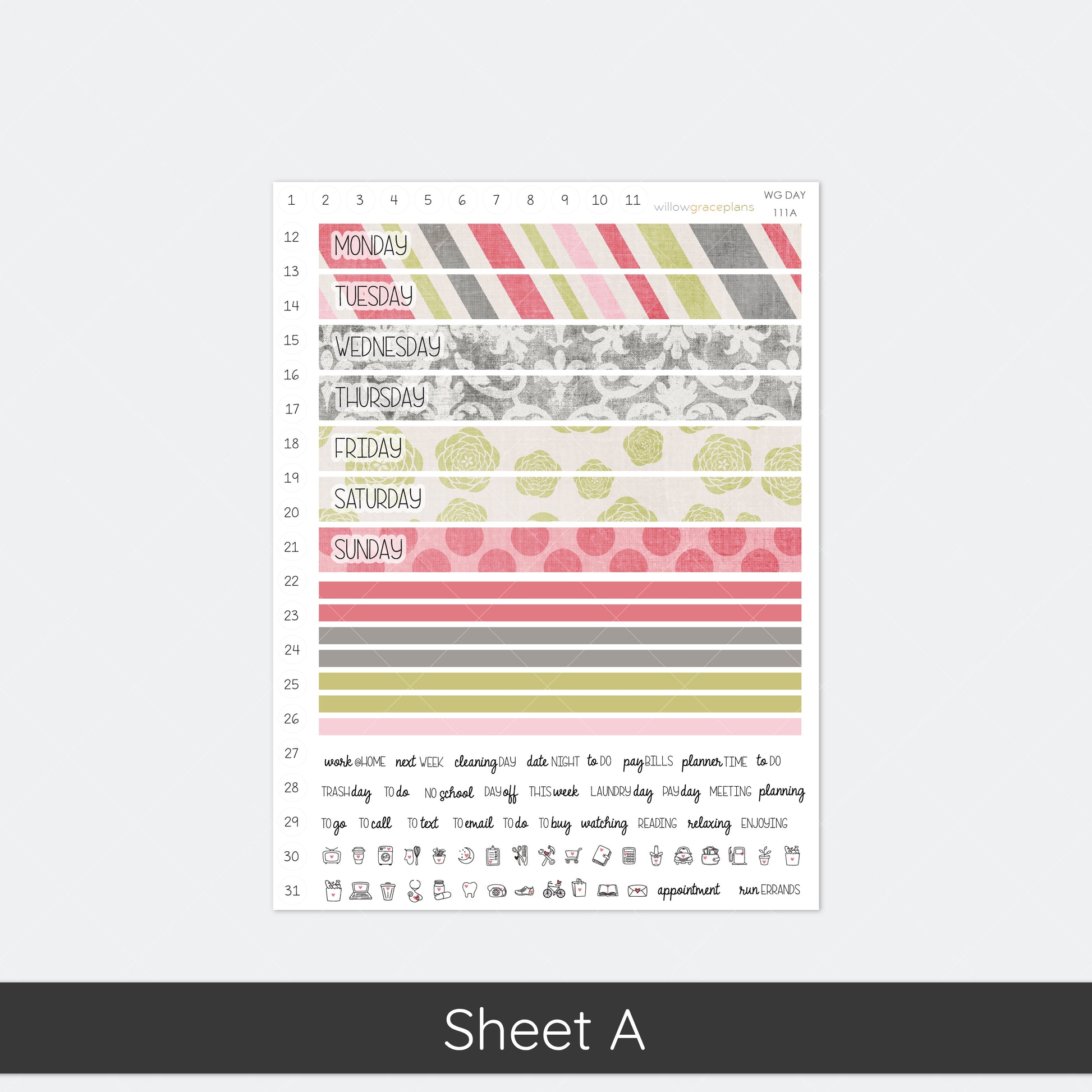 Designed to fit WG daily planner pages. *Please note that these stickers are cut perfectly for the WG lined layout. They will also work with the grid layout, but the fit is not as exact.