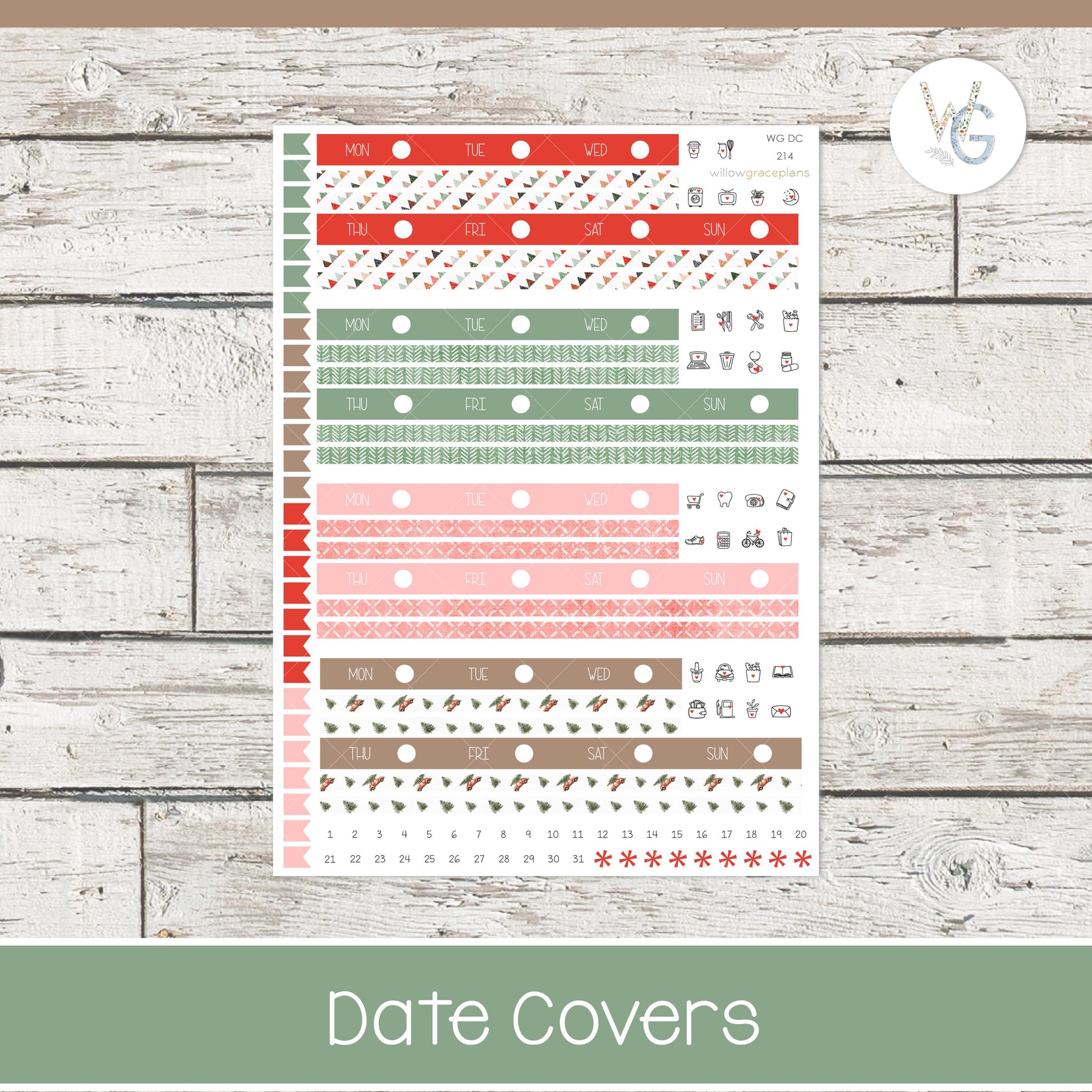 Date Covers - Planner Stickers - Willow Grace Planner Stickers | DC-214