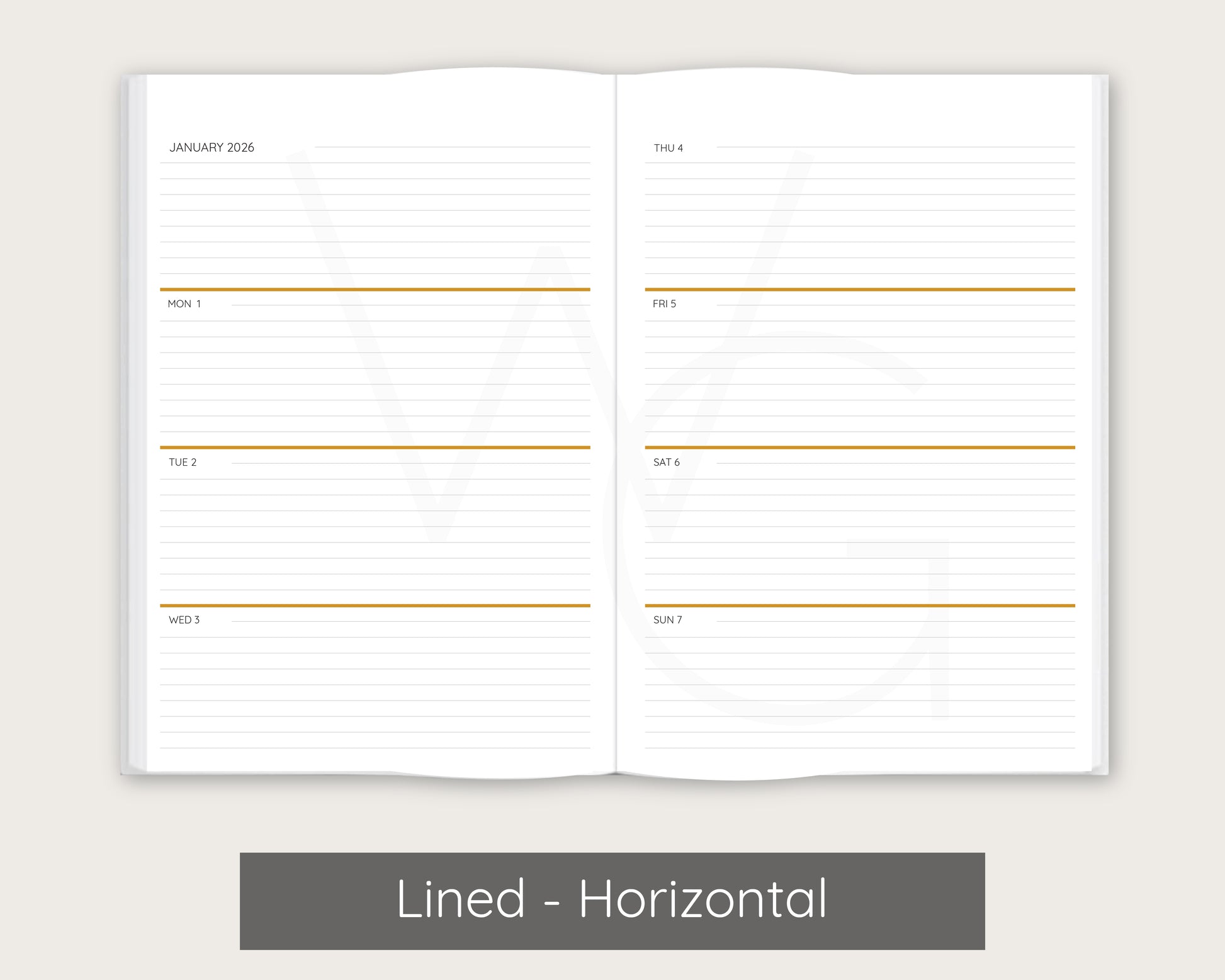 Create a planner that fits your life. The Willow Grace Signature Planner features a personalized cover with coordinating interior pages and lets you choose your start month, interior style, layouts, and more—so your planner is built exactly the way you prefer.