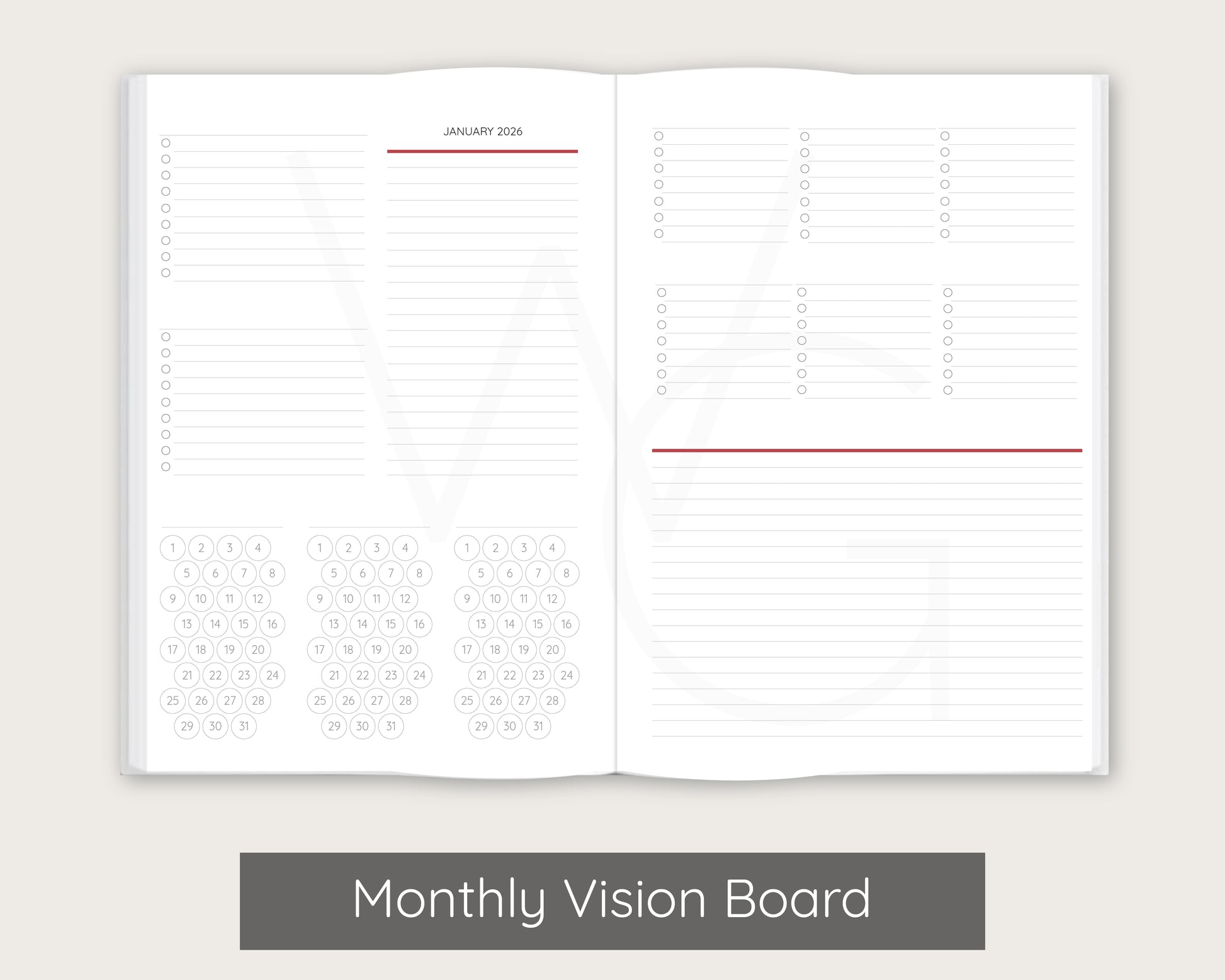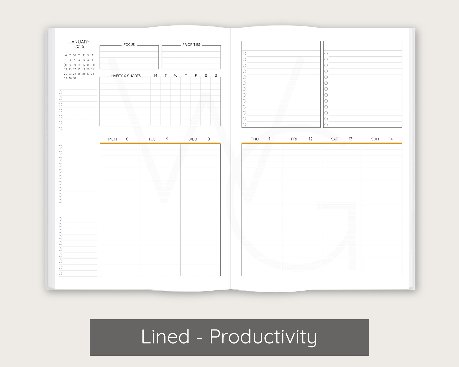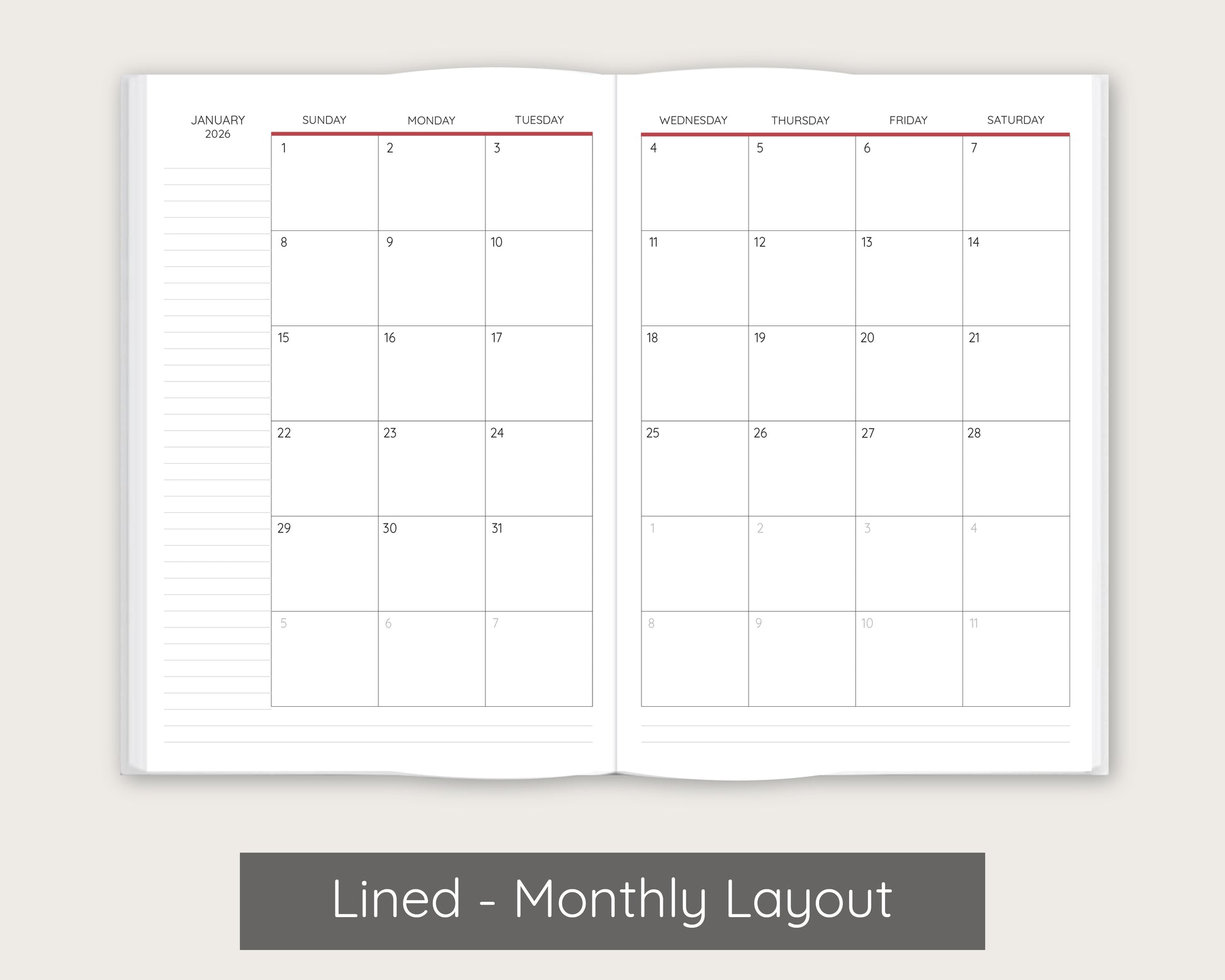 Planner setup is grouped by month. For example, a planner that begins in January will have January monthly layouts, January weekly layouts, January daily layouts followed by February's layouts.