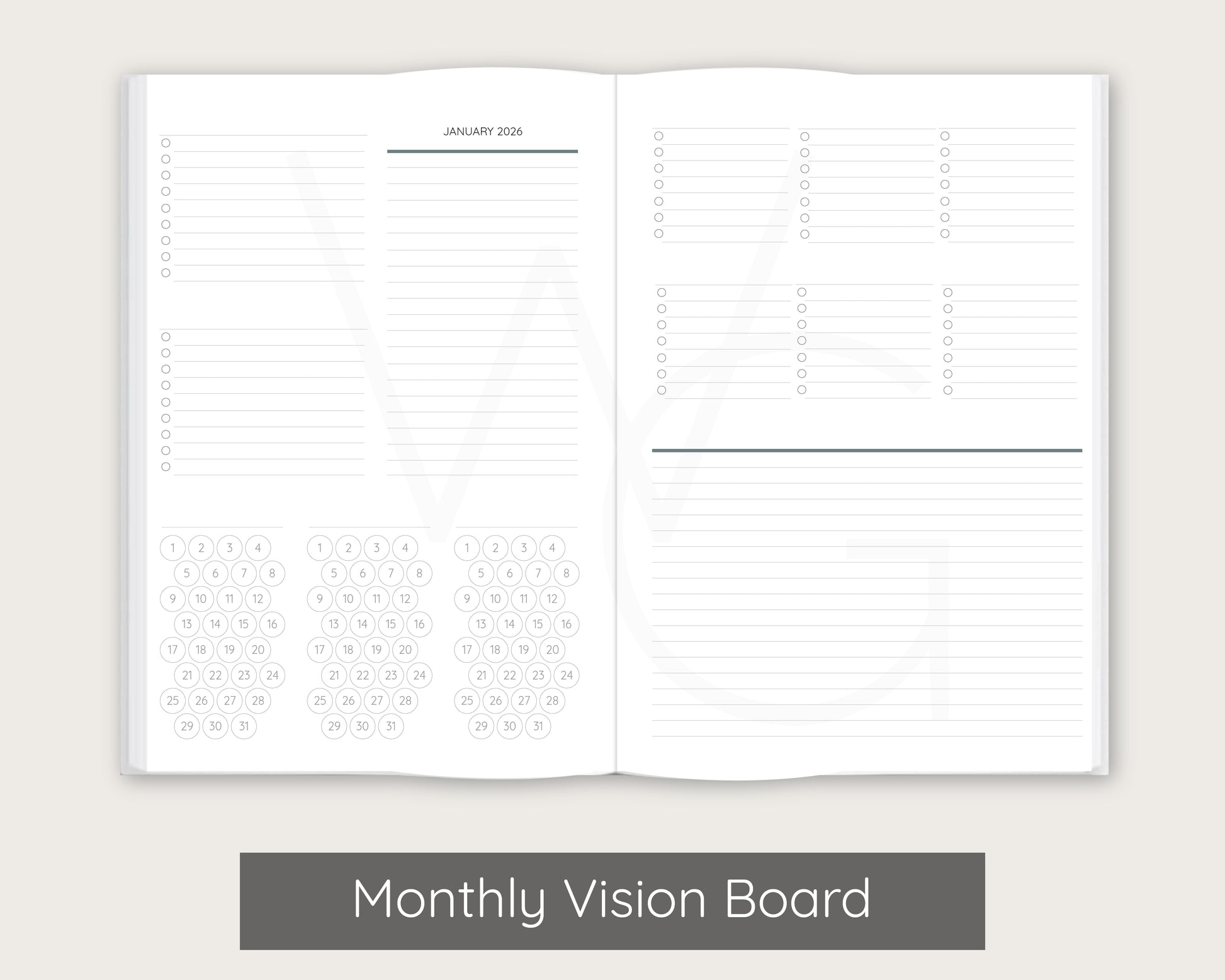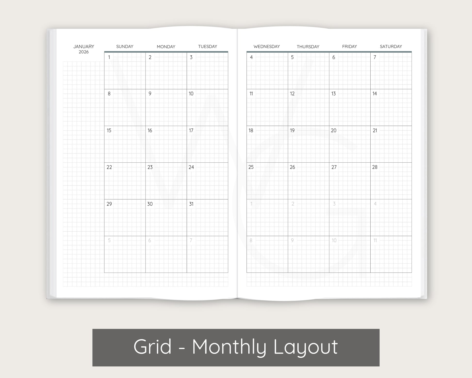 - Optional monthly pages