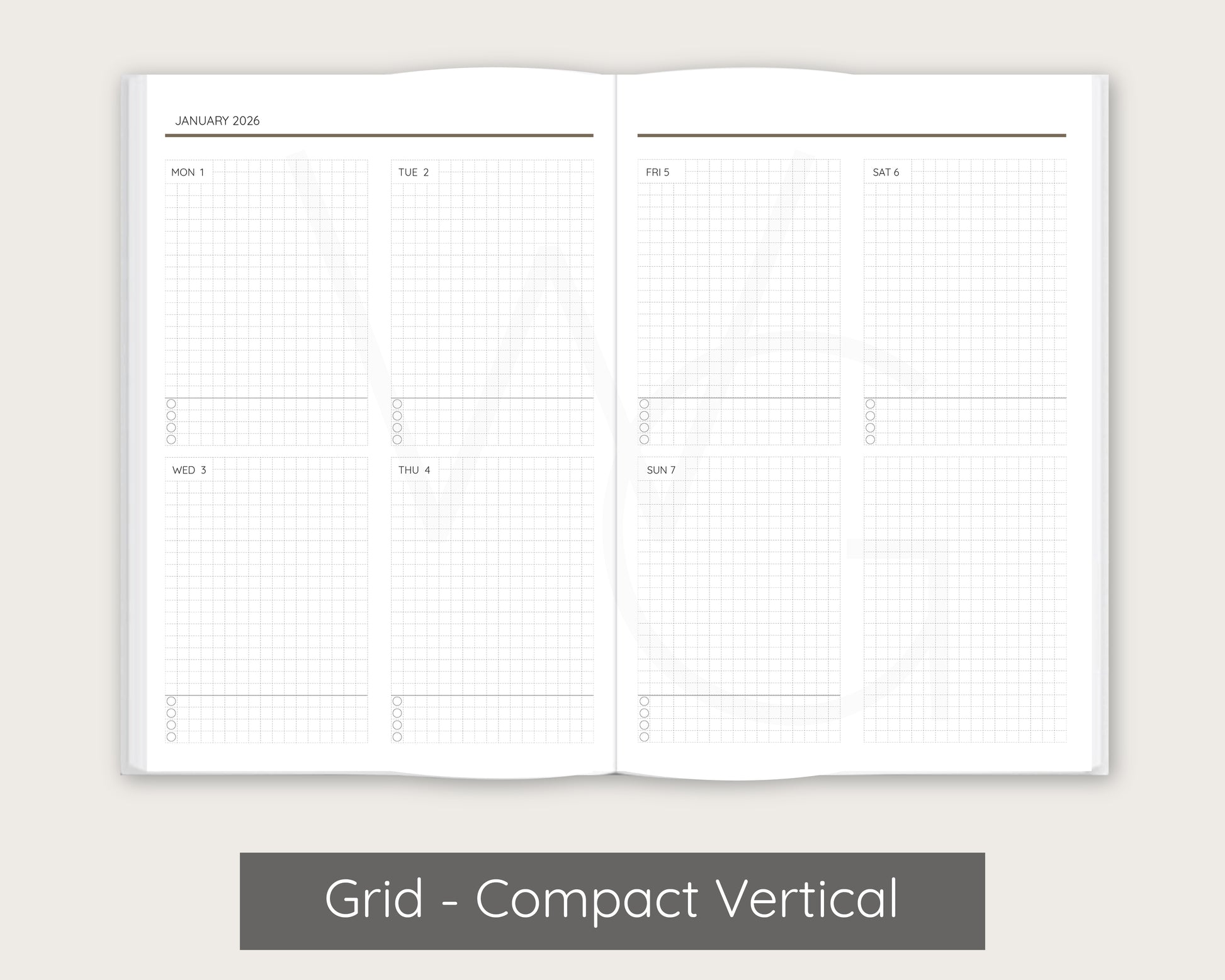 Planner setup is grouped by month. For example, a planner that begins in January will have January monthly layouts, January weekly layouts, January daily layouts followed by February's layouts.