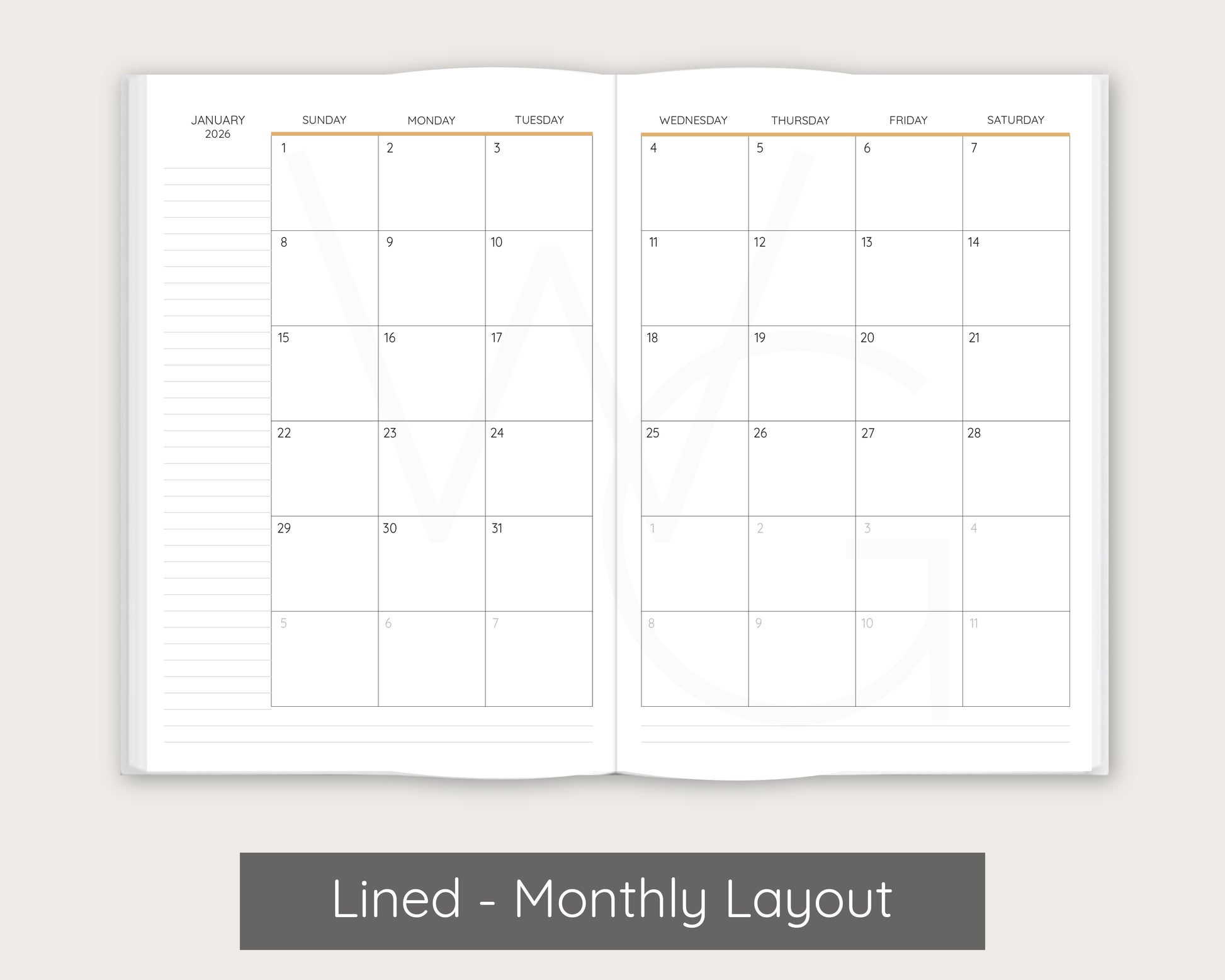 Create a planner that fits your life. The Willow Grace Signature Planner features a personalized cover with coordinating interior pages and lets you choose your start month, interior style, layouts, and more—so your planner is built exactly the way you prefer.