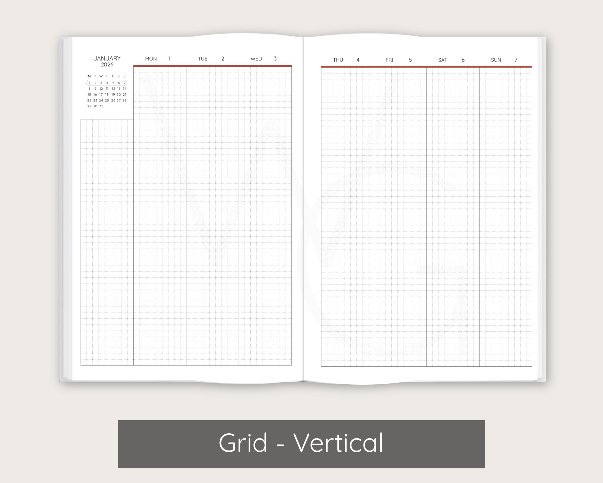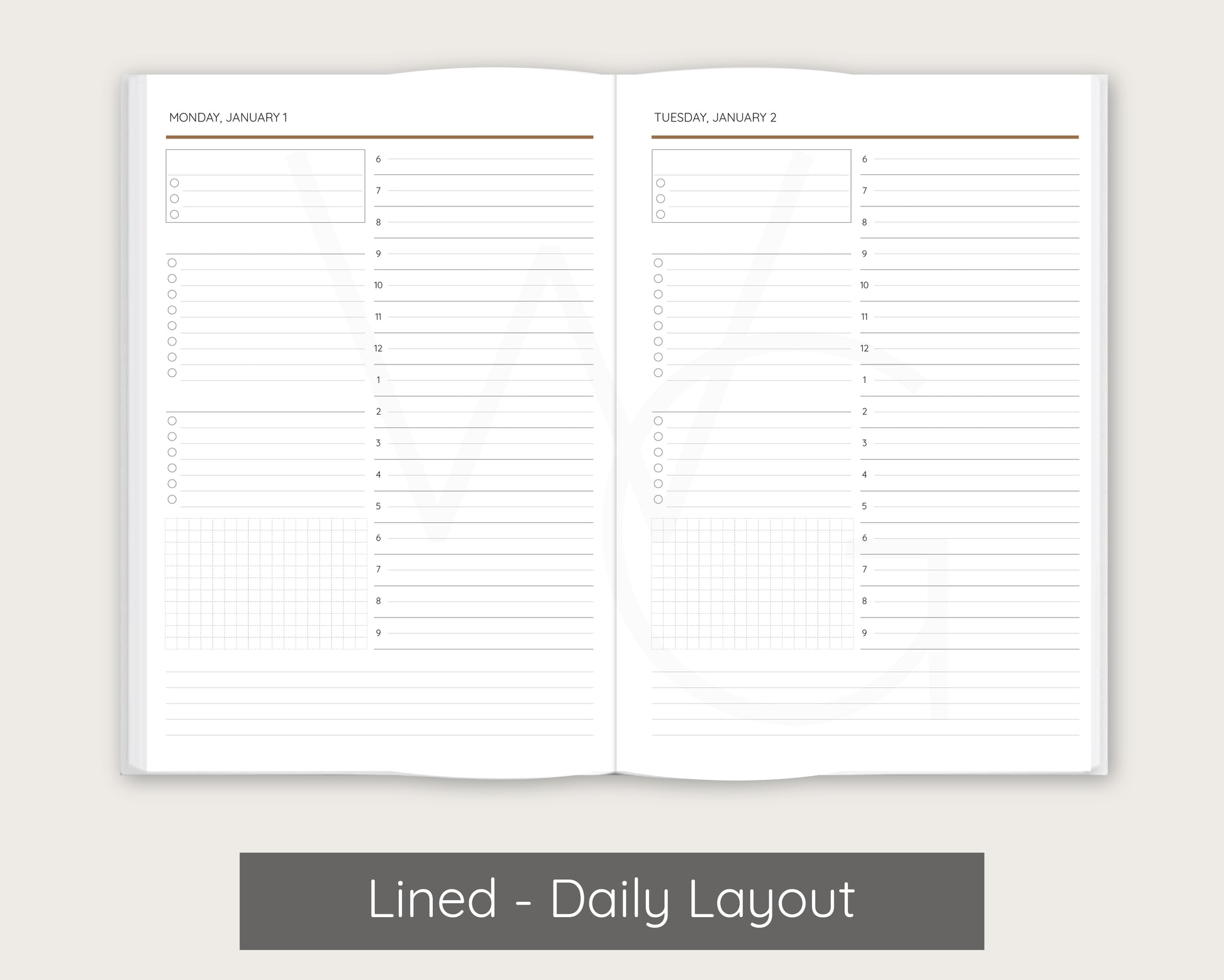 Planner setup is grouped by month. For example, a planner that begins in January will have January monthly layouts, January weekly layouts, January daily layouts followed by February's layouts.