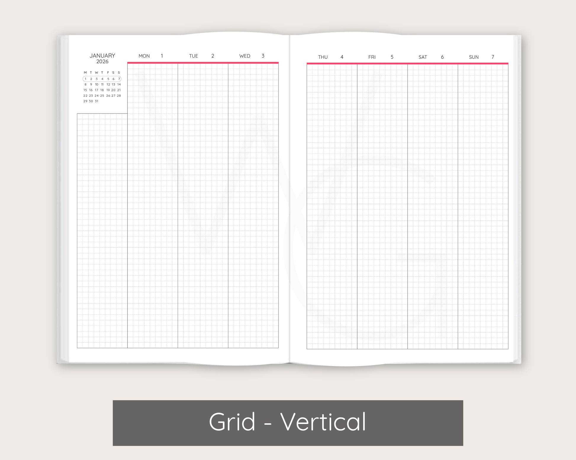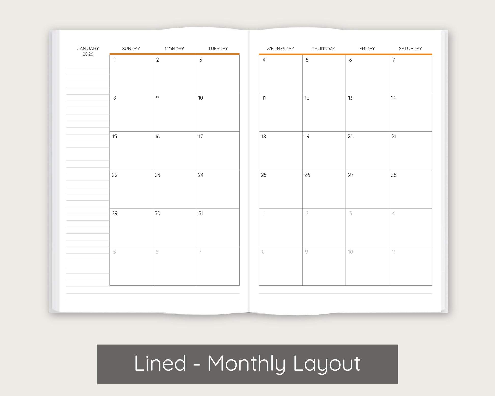Planner setup is grouped by month. For example, a planner that begins in January will have January monthly layouts, January weekly layouts, January daily layouts followed by February's layouts.