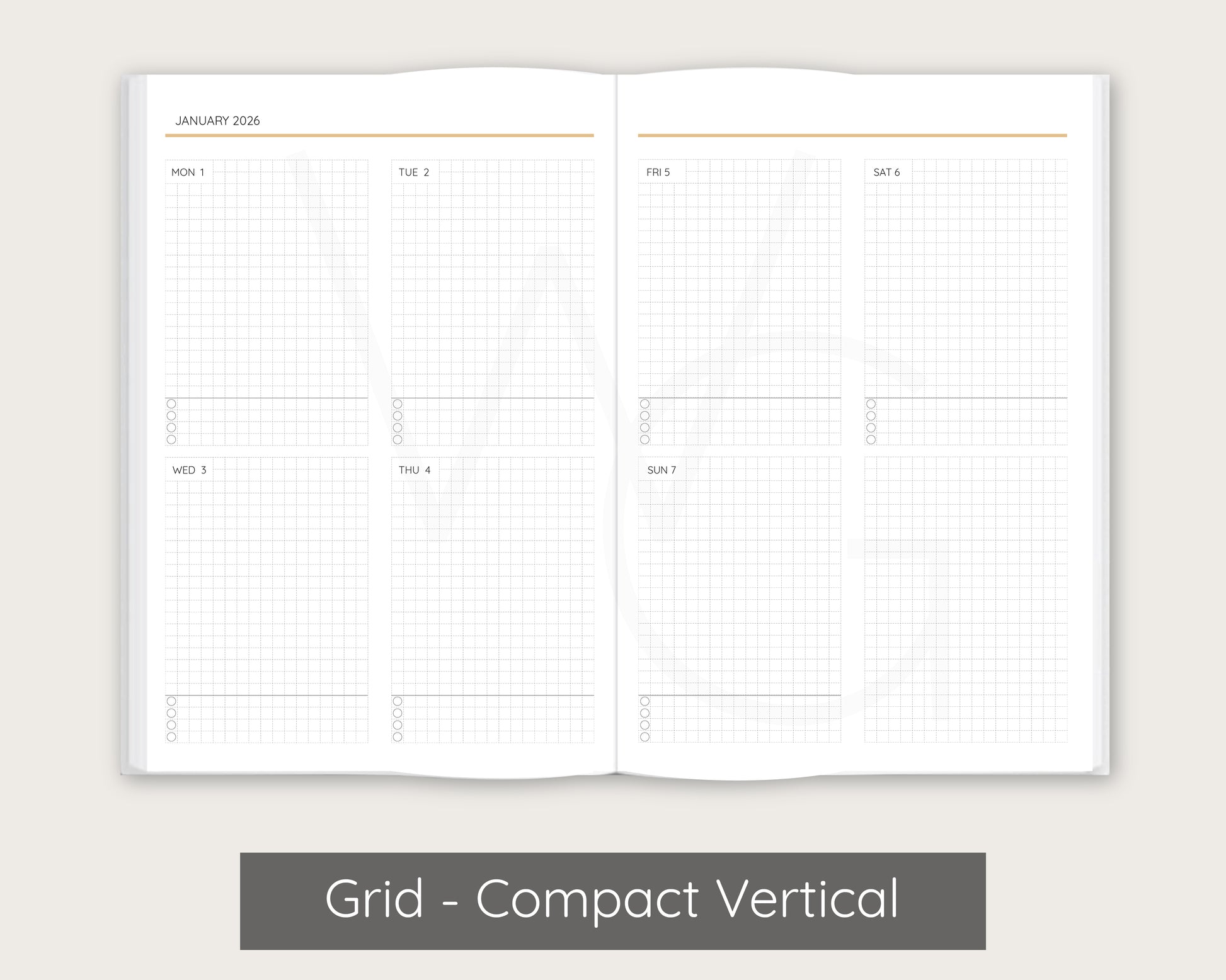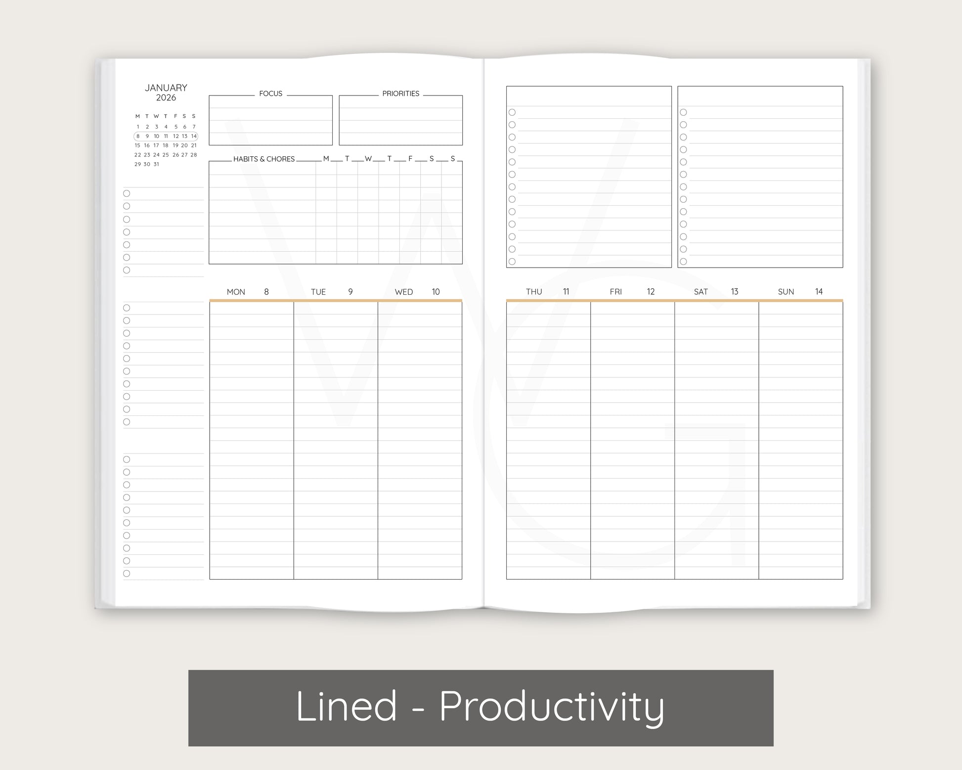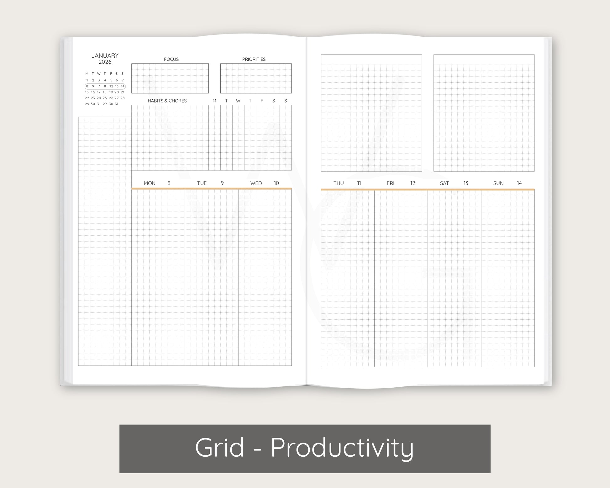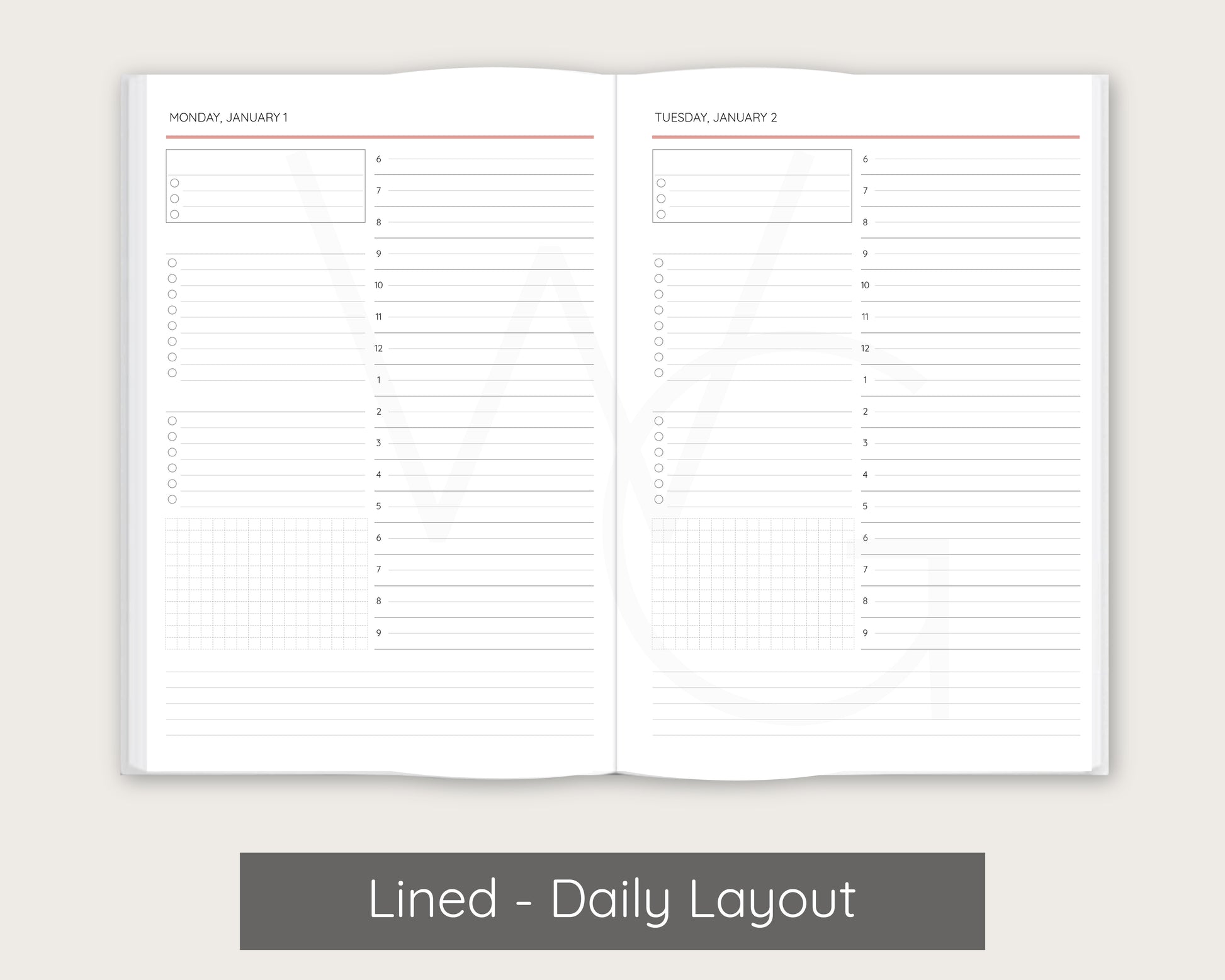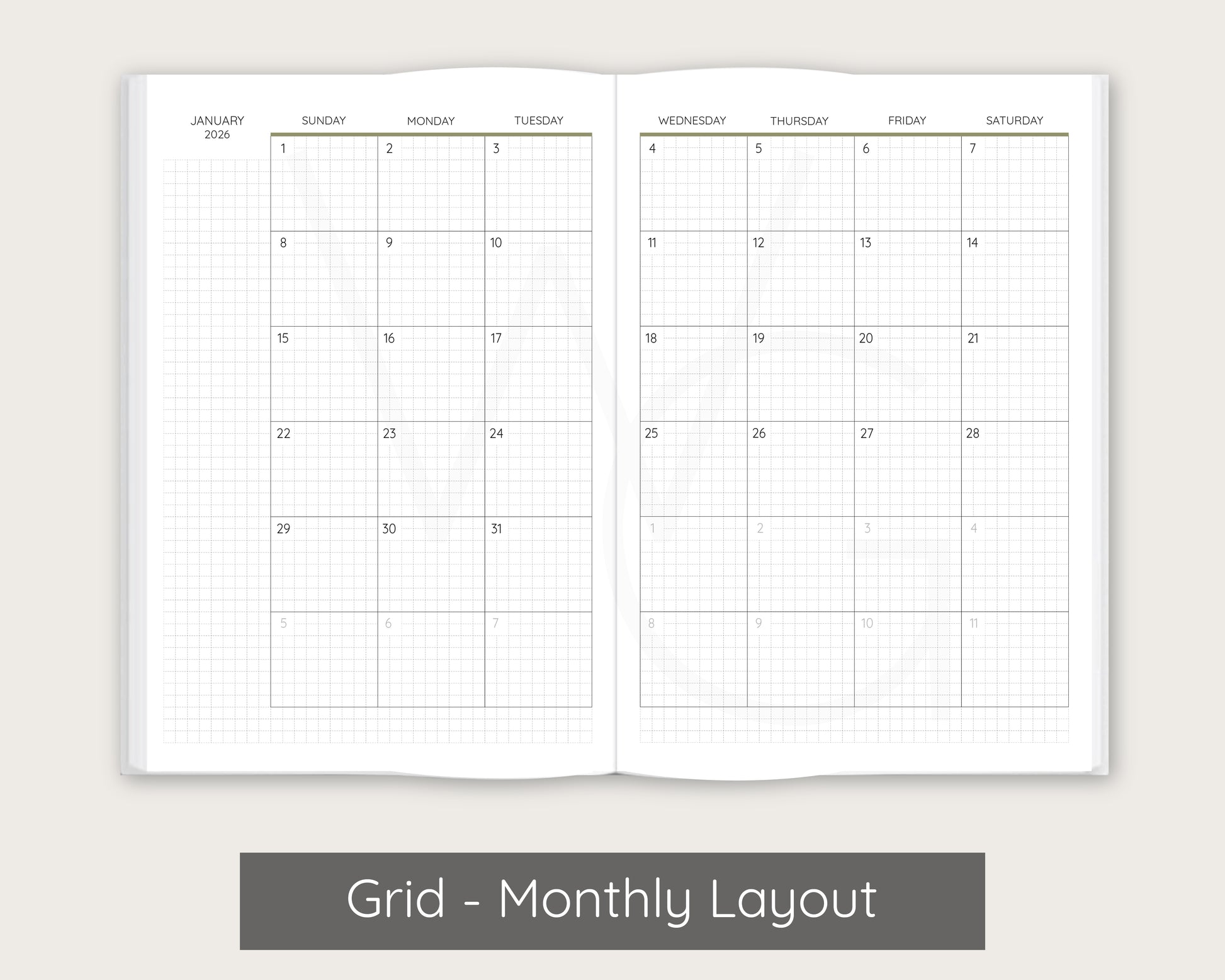 Planner setup is grouped by month. For example, a planner that begins in January will have January monthly layouts, January weekly layouts, January daily layouts followed by February's layouts.