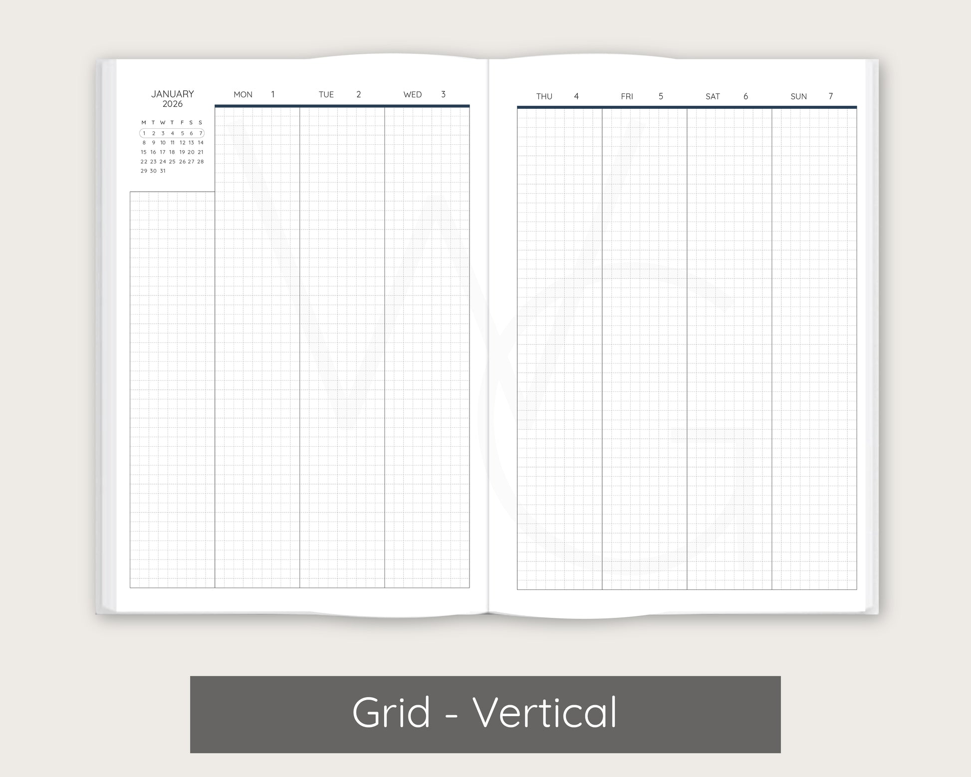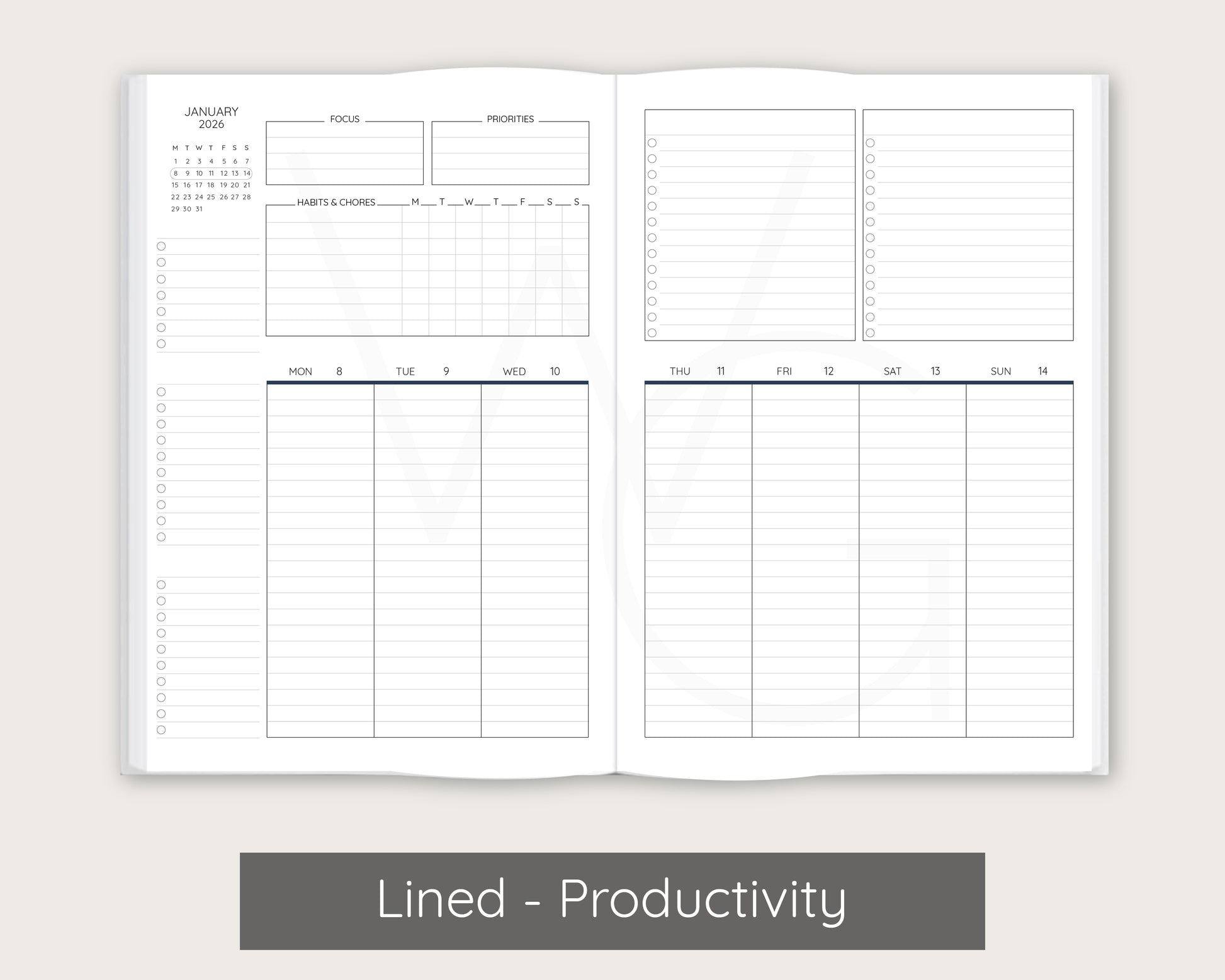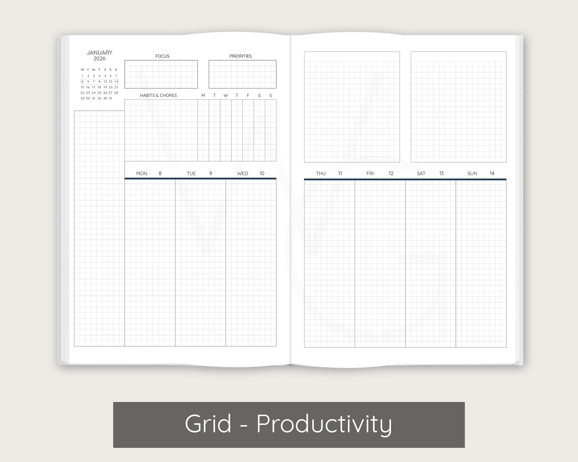 Planner setup is grouped by month. For example, a planner that begins in January will have January monthly layouts, January weekly layouts, January daily layouts followed by February's layouts.