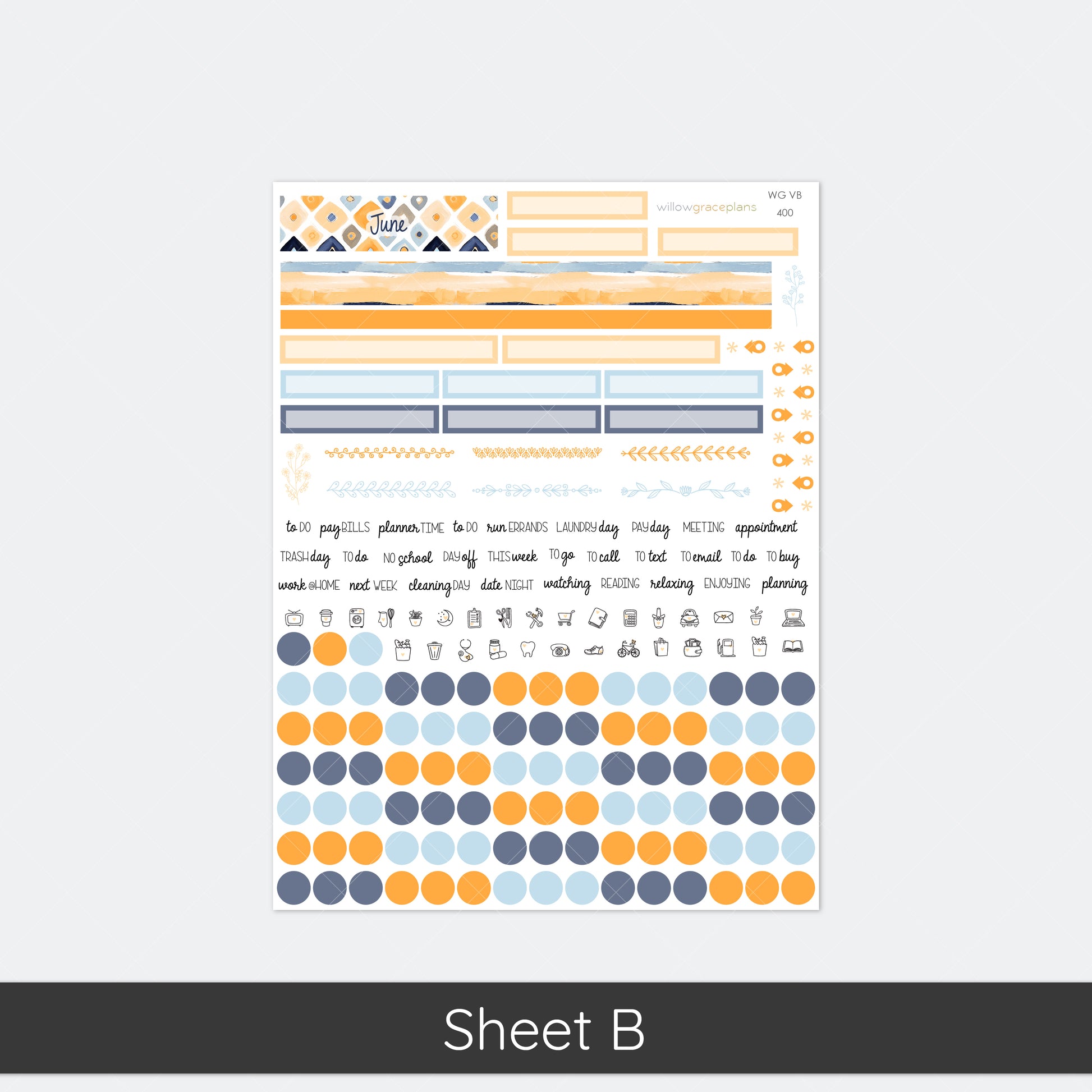 Designed to fit WG Monthly (sheet A) and Vision Board (sheet B) planner pages.