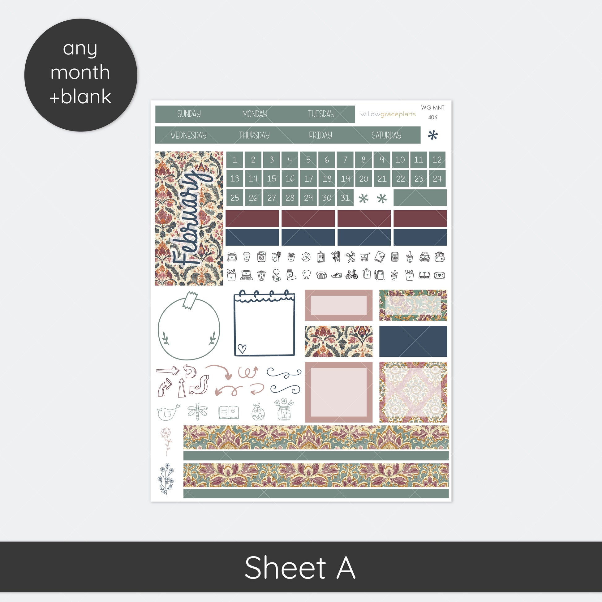 Designed to fit WG Monthly (sheet A) and Vision Board (sheet B) planner pages.