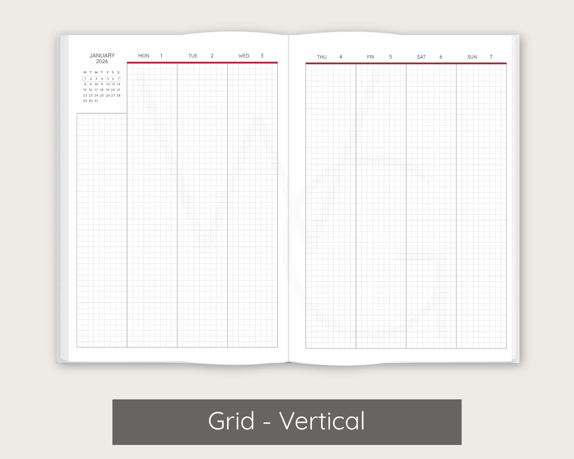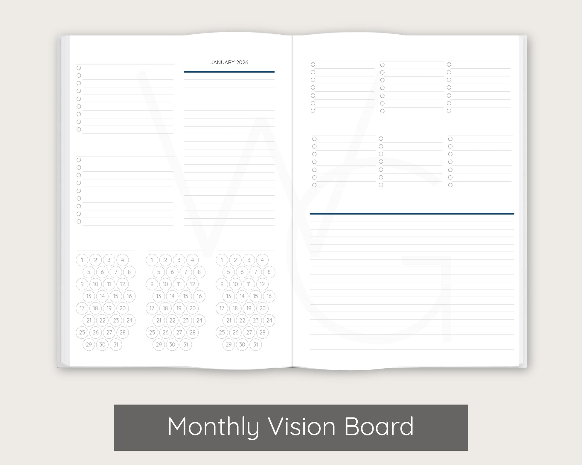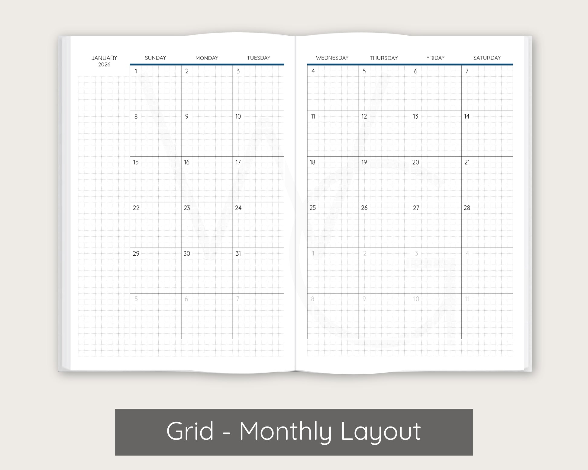 Planner setup is grouped by month. For example, a planner that begins in January will have January monthly layouts, January weekly layouts, January daily layouts followed by February's layouts.
