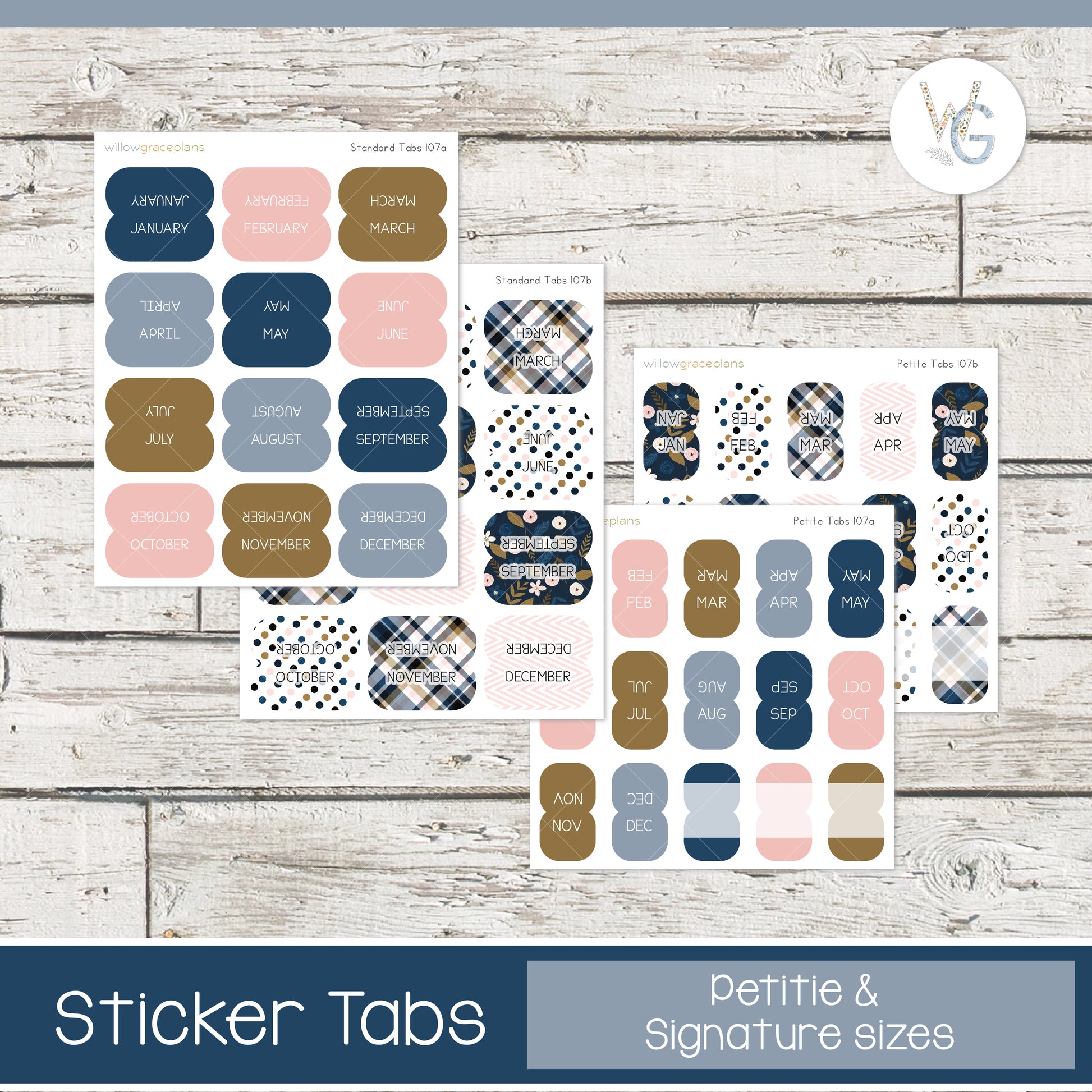 Planner Tabs | Blush & Navy