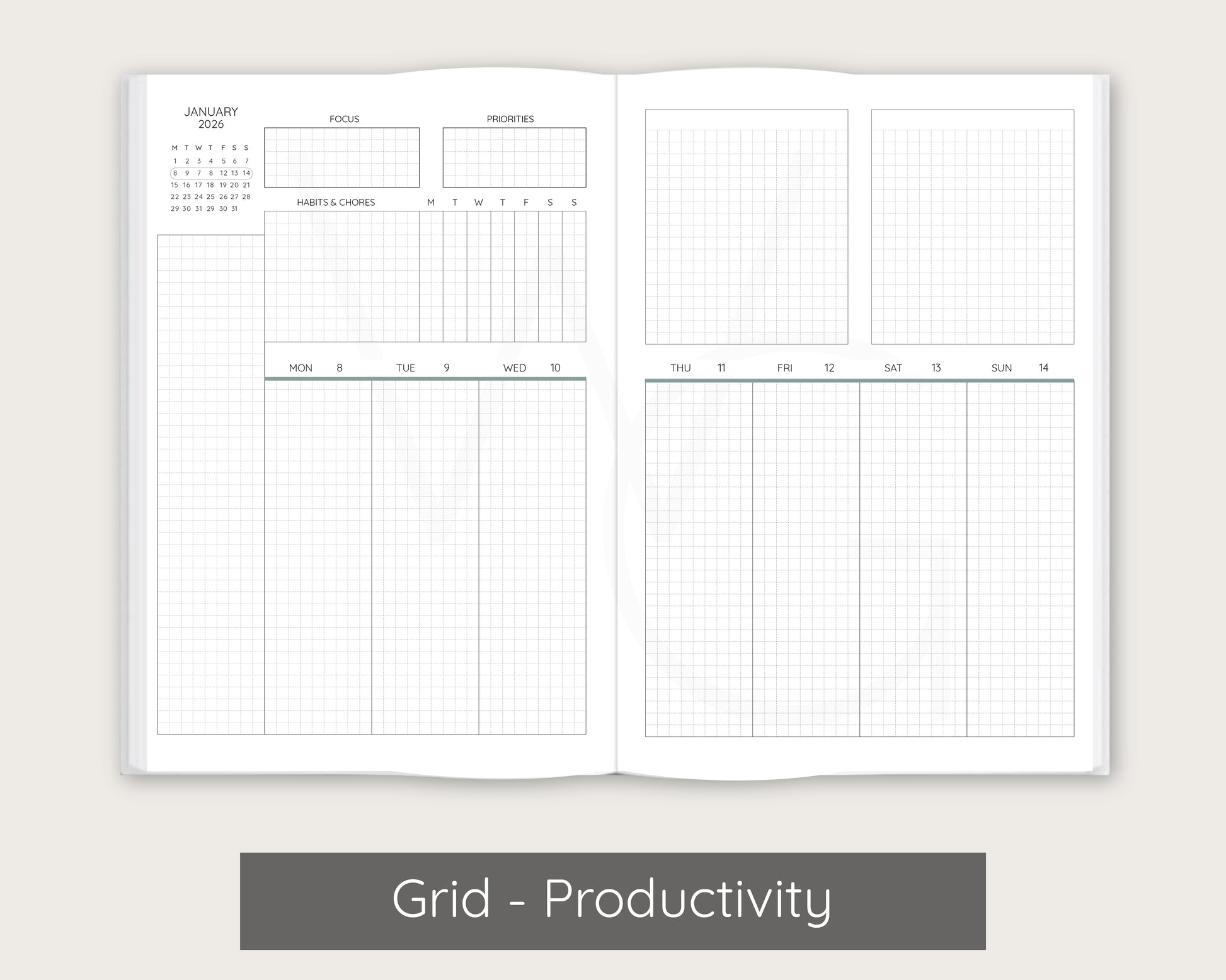 Planner setup is grouped by month. For example, a planner that begins in January will have January monthly layouts, January weekly layouts, January daily layouts followed by February's layouts.