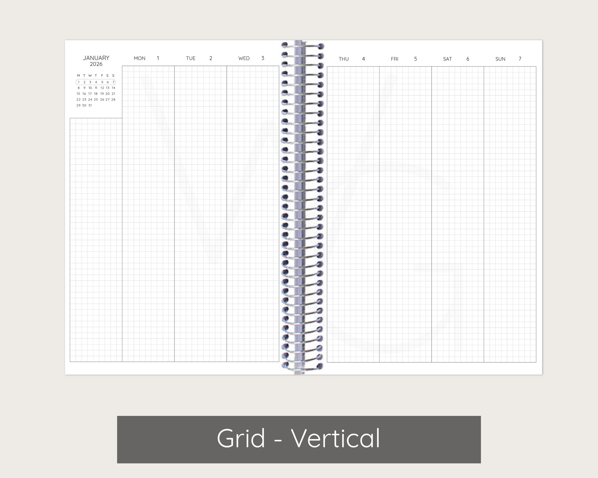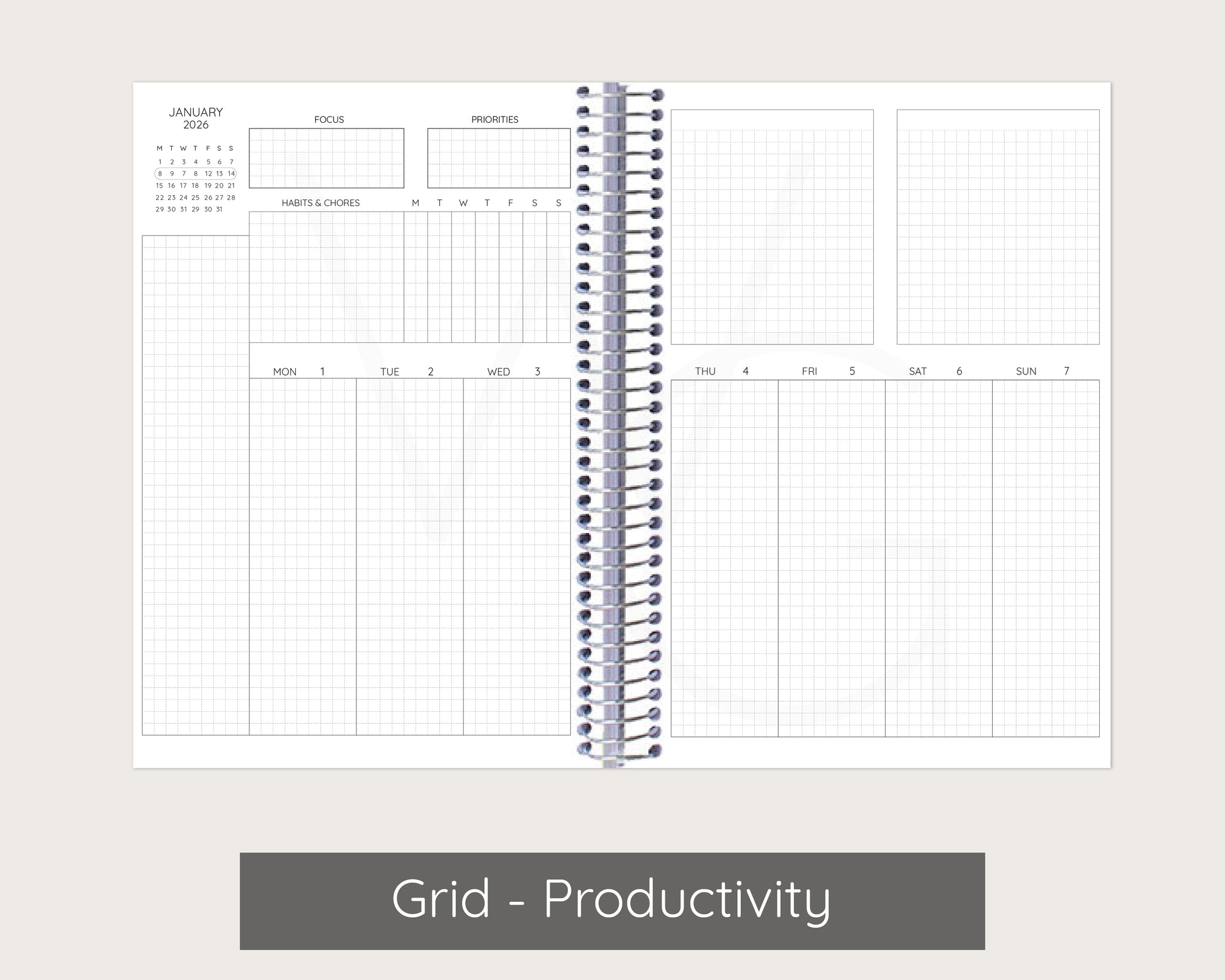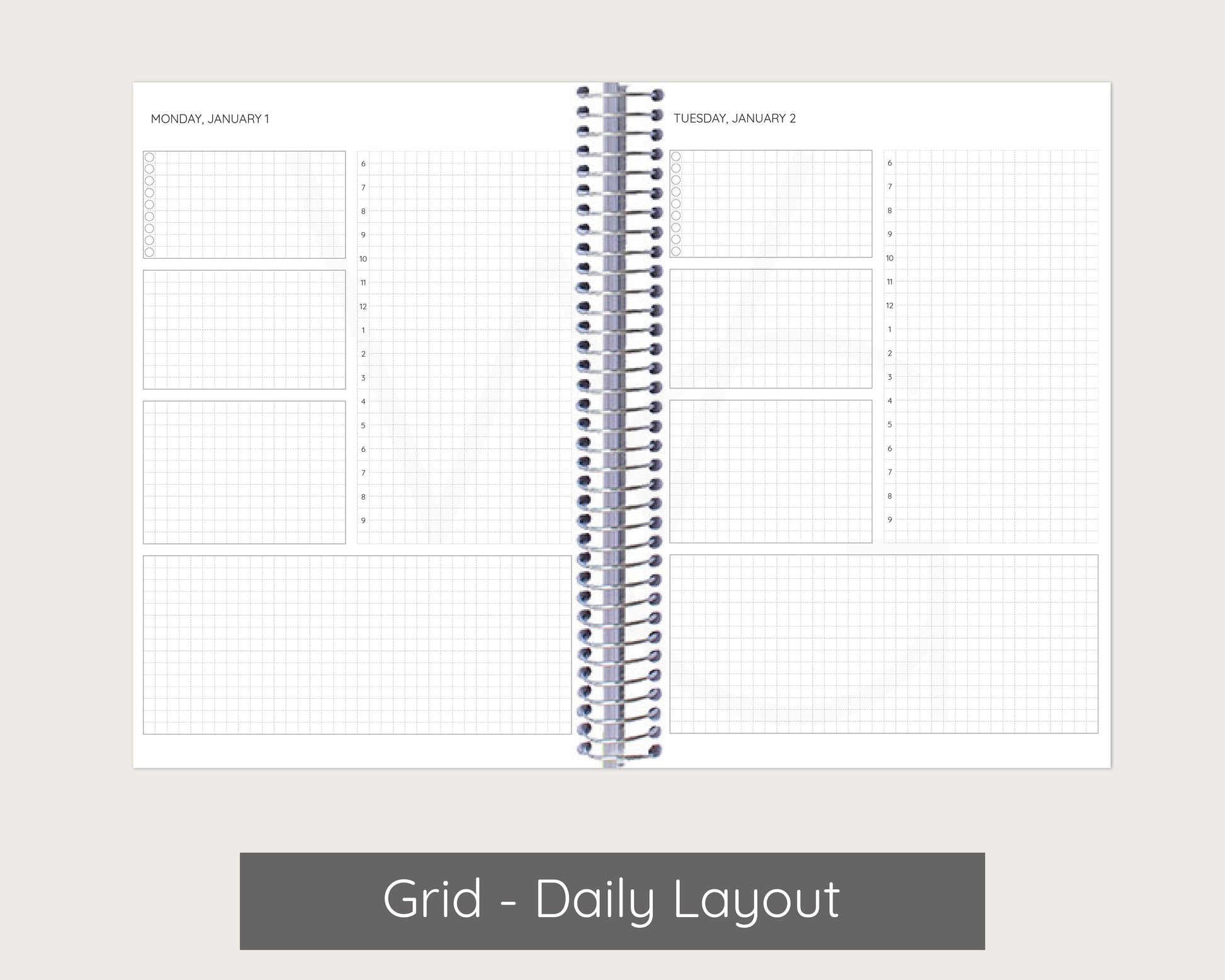 Planner setup is grouped by month. For example, a planner that begins in January will have January monthly layouts, January weekly layouts, January daily layouts followed by February's layouts.