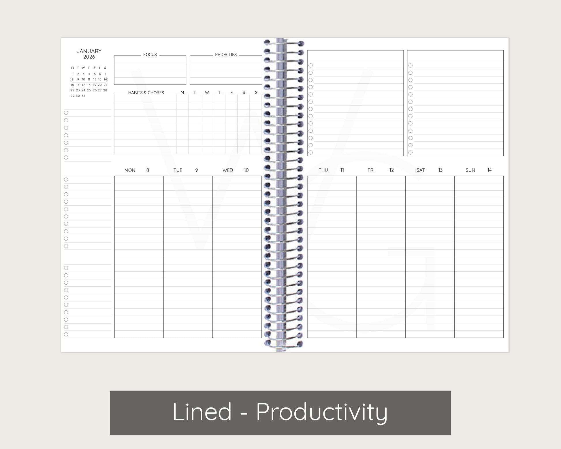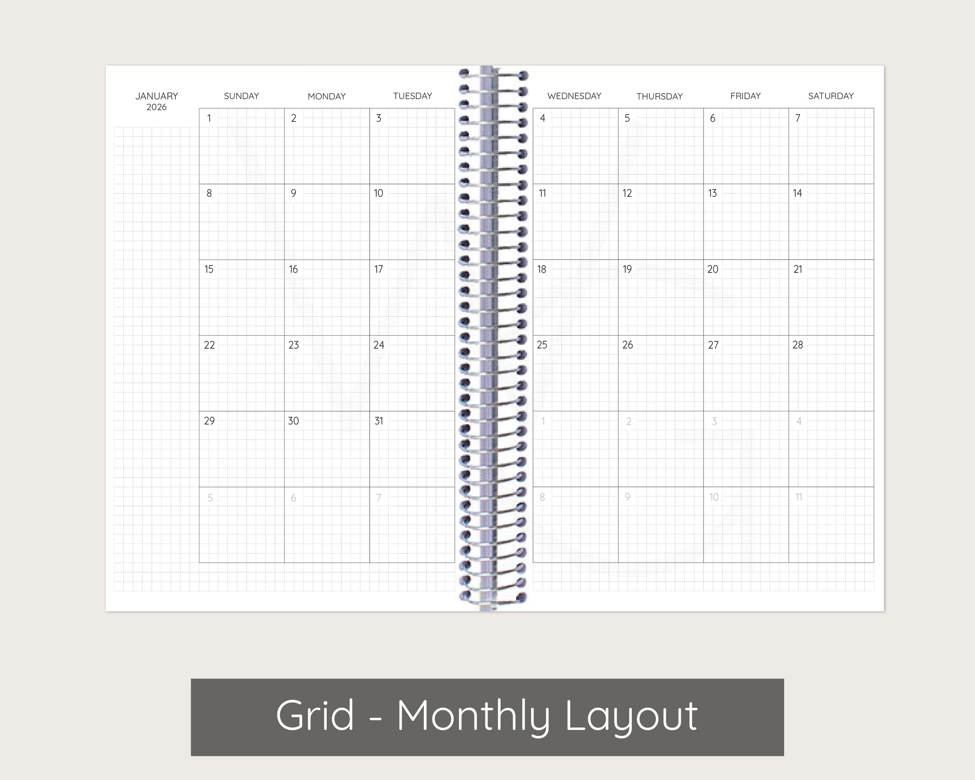 - Fully dated planner —you pick the start month