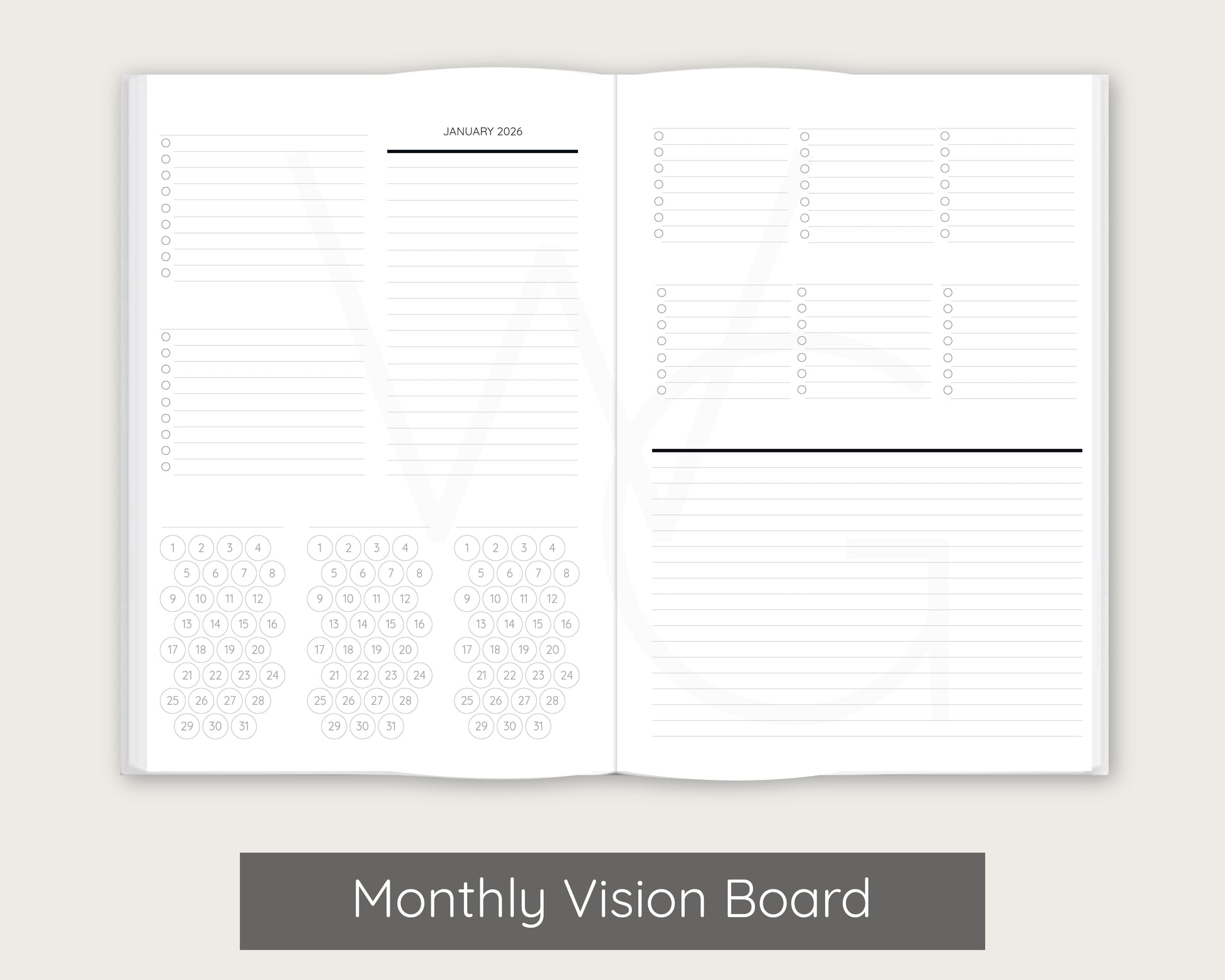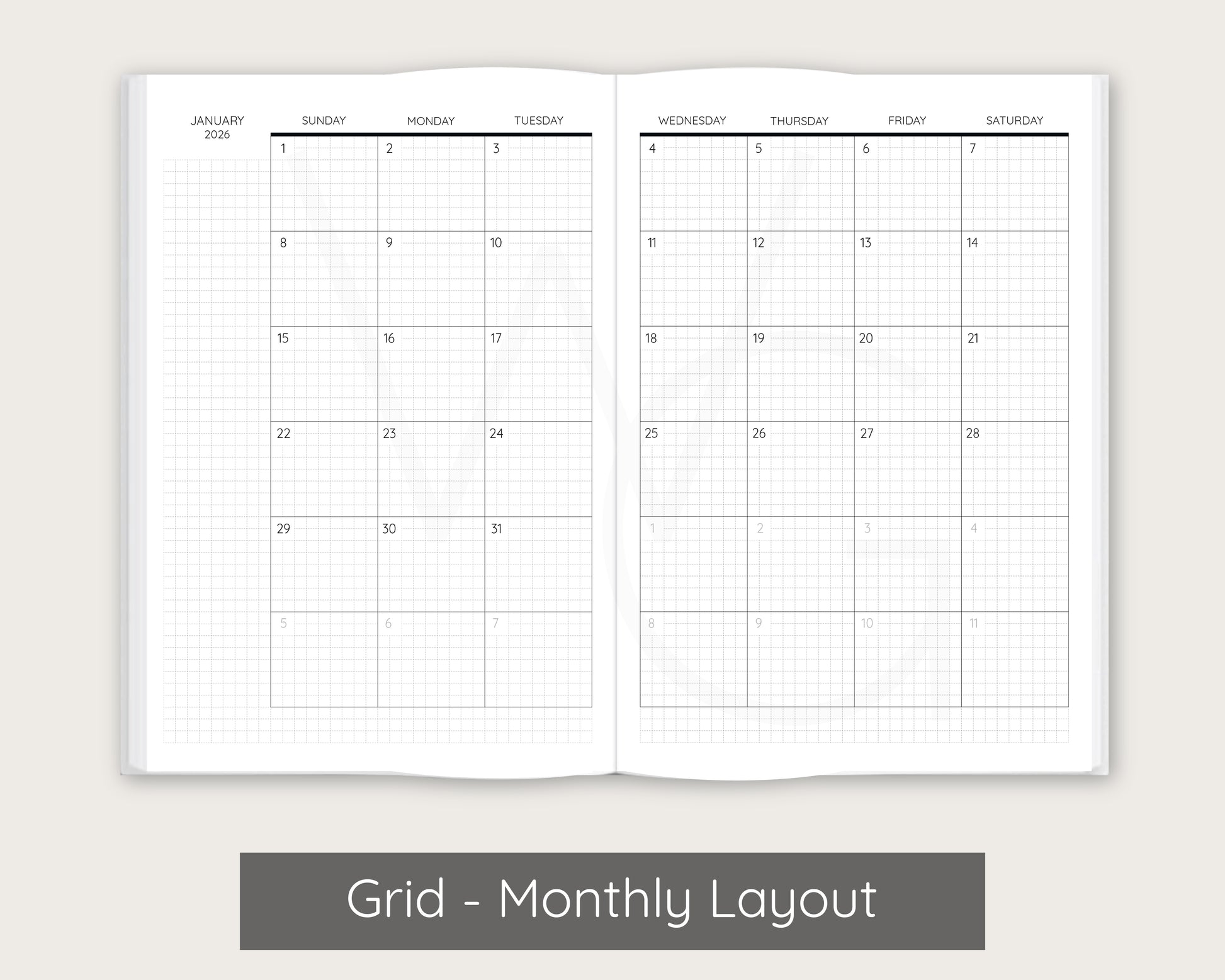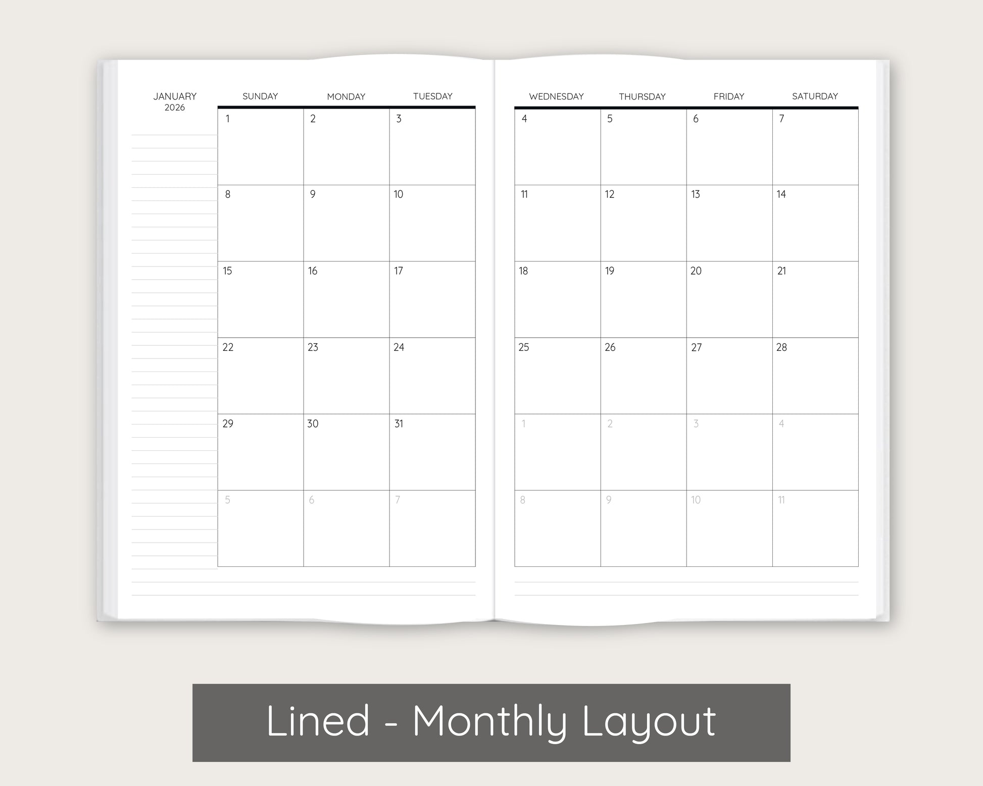 - Optional monthly pages