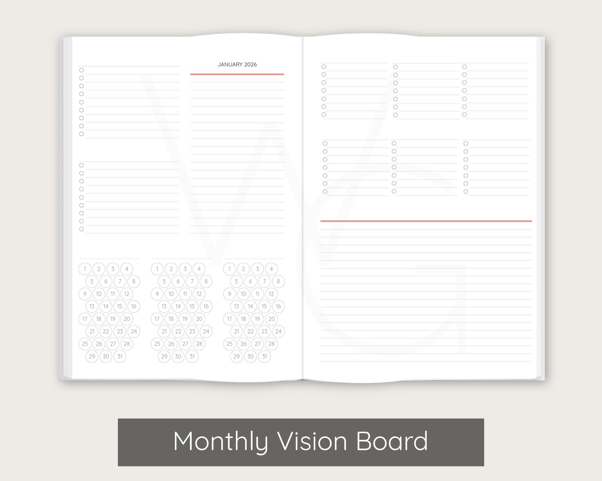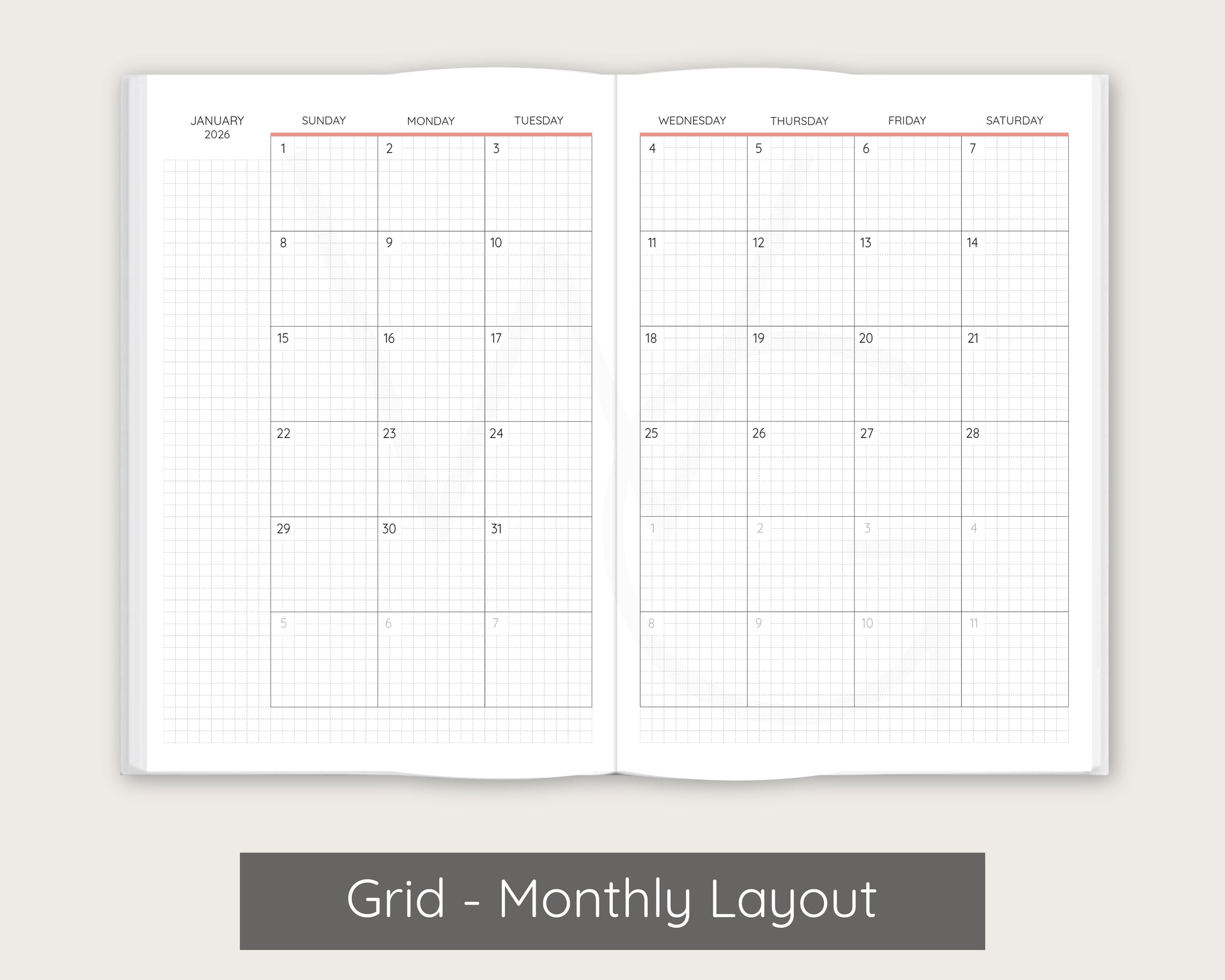 Planner setup is grouped by month. For example, a planner that begins in January will have January monthly layouts, January weekly layouts, January daily layouts followed by February's layouts.