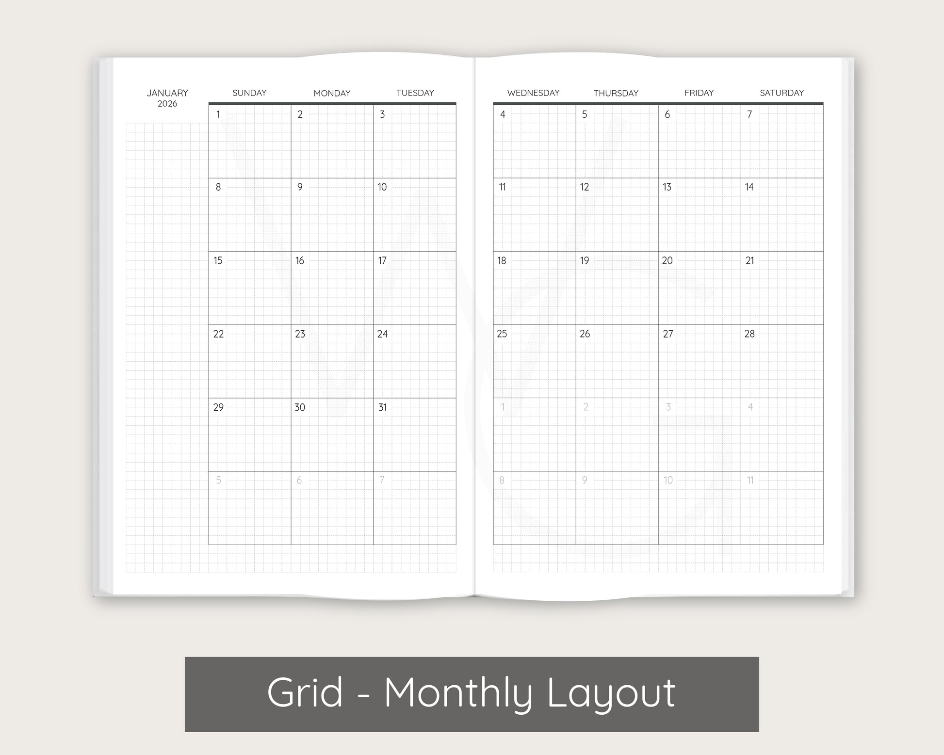 - Optional monthly pages
